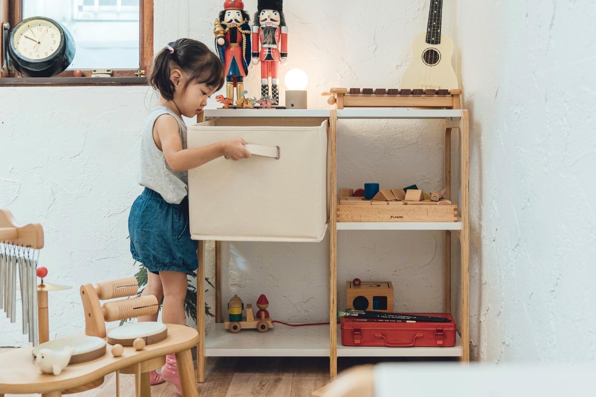 玩樂的同時,也要教孩子愛惜物品,搭配簡單好收納的家具、讓孩子對收拾產生興趣更容易養成習慣。
