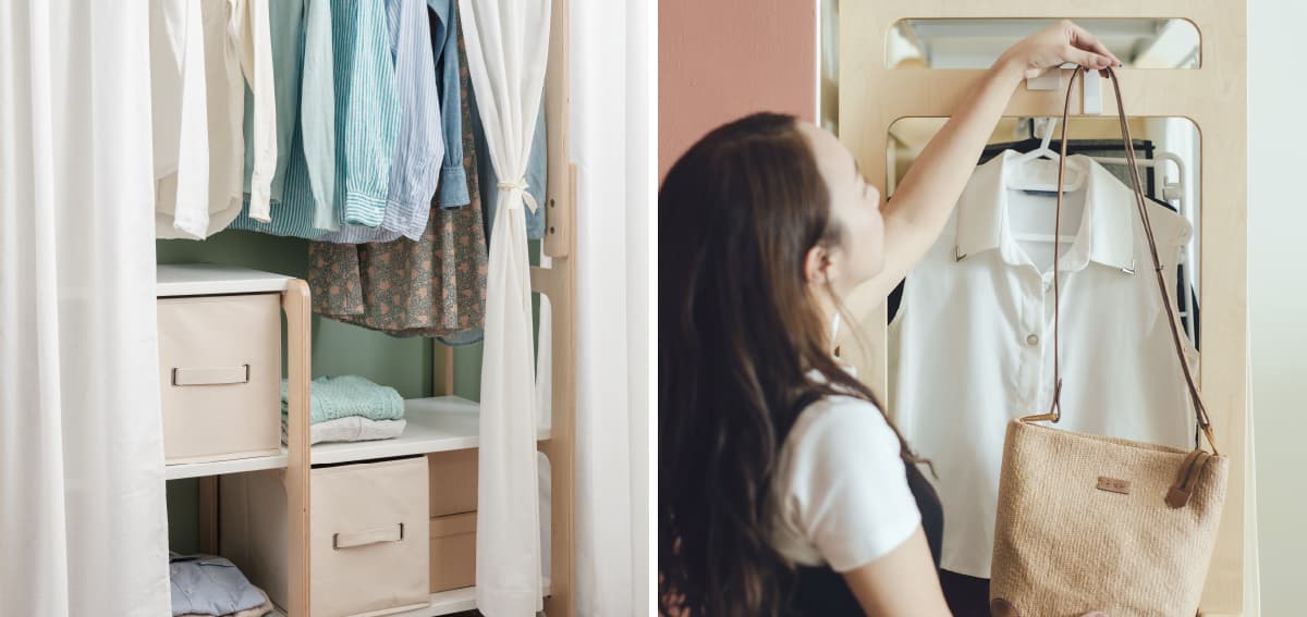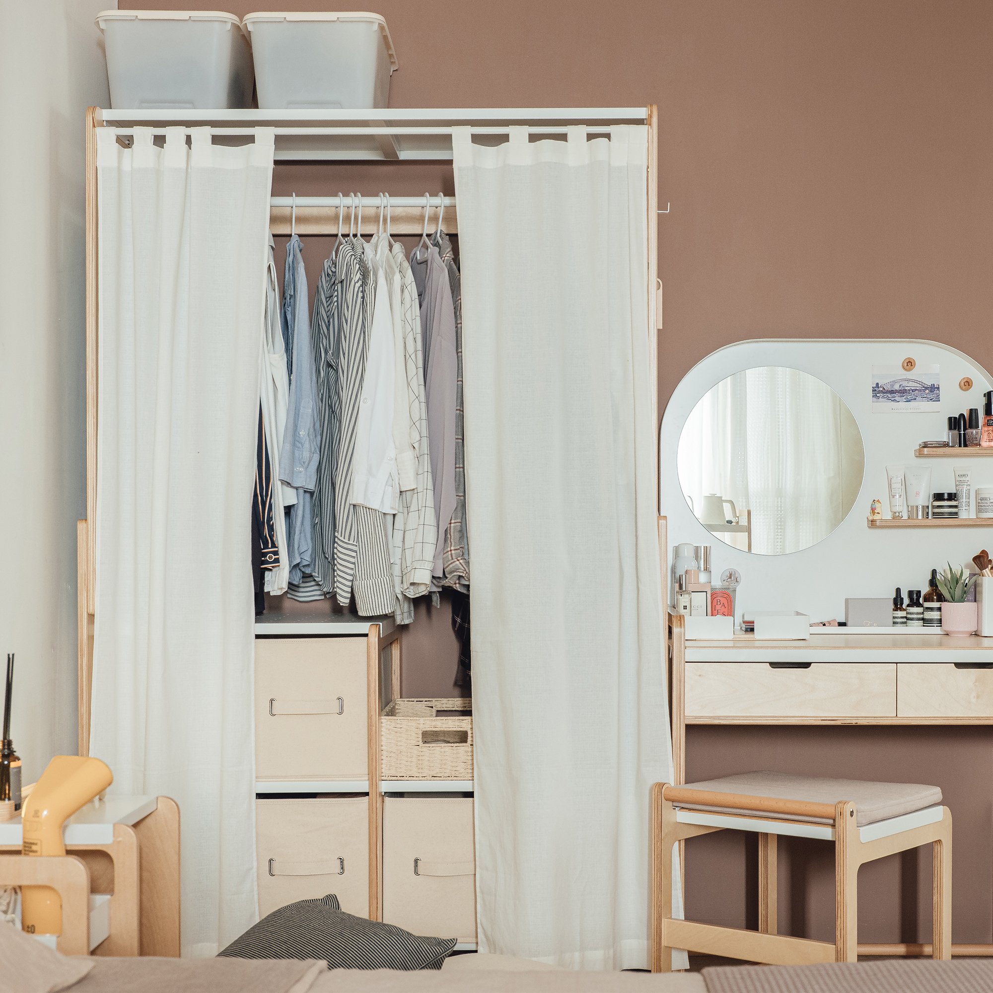 整理衣服還有選衣服的時候很方便,整理好之後布簾一秒拉上看起來乾乾淨淨的!