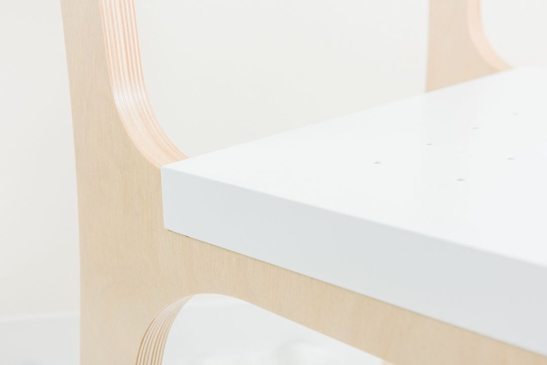 ▲走走單人椅 - 細部特寫使用樺木夾板。