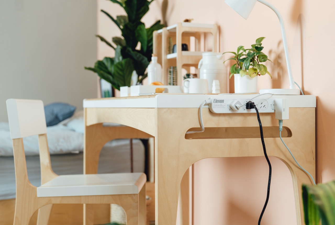 延長線和家具一樣,處處出沒在你我的生活之中,每個空間都的少不了他們的存在。這次合作走走家具提供了台中金典展示點,為Elevon延長線的拍攝取景重點。走走家具用金屬部件組成的特性,讓延長線的背面磁鐵設計,可隨手吸附在家具上,讓大家可以直覺隨手使用,不用再將延長線隱藏起來。將延長線從生活百貨提升到美感家飾,是人人都很好入手的一款新型美感延長線。