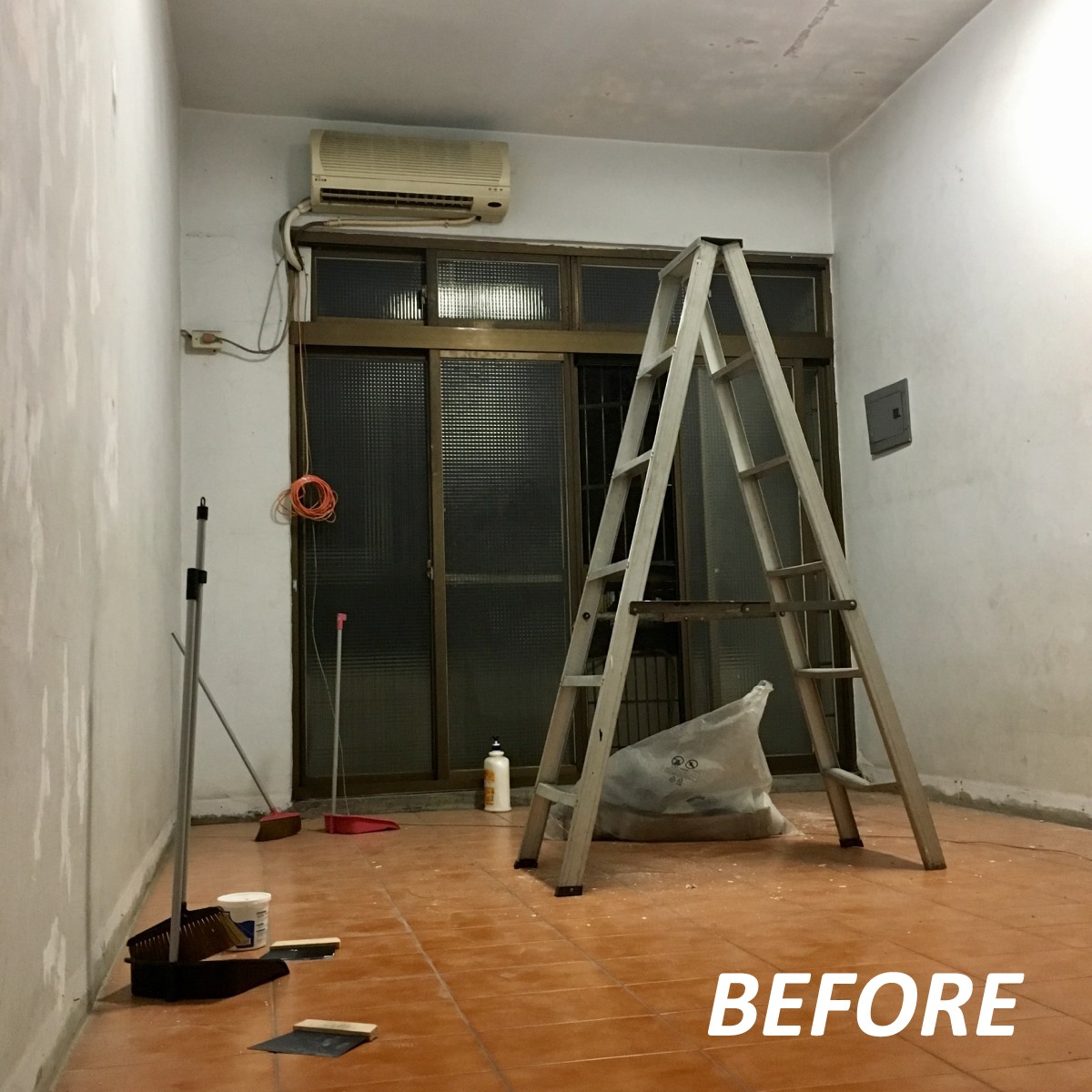 先來看看房間的原始模樣,由於是三十年的老屋,油漆早已斑駁,地板磁磚也非常有年代感: