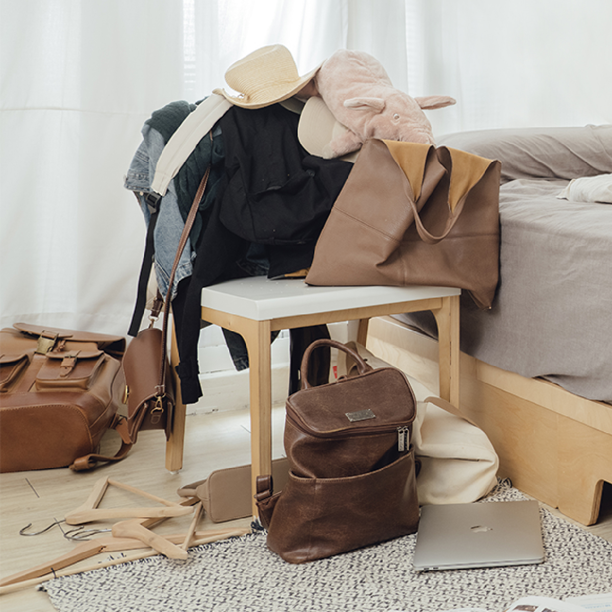 在各種激烈討論後,我們到論壇、電商網站上進行資料蒐集,發現包包收納問題不只在包包本身,甚至牽涉其他相關的物件如:外套、帽子、錢包、雨具…等,基本上囊括「所有出門時會用到的各式用品」,回到家後難以收拾整理,造成了「椅子山」和「汙衣區」的混亂狀況。