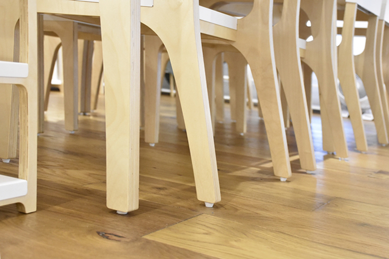 運用數量可觀的走走桌椅,形成了溫馨和樂的共享用餐區。