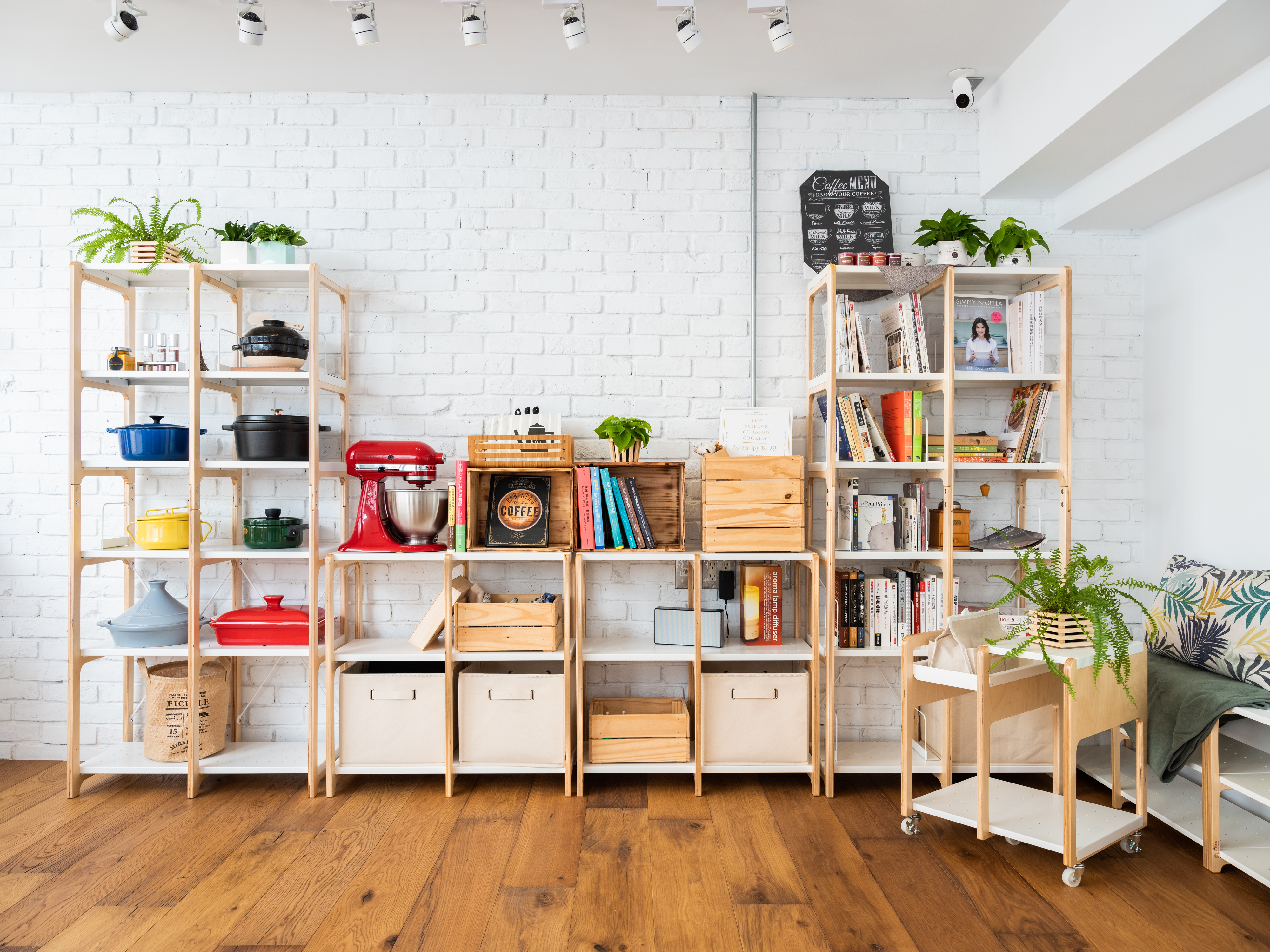 ▲ 〈 共享廚房|自煮生活 〉清新風格陳列廚房用具及食譜。