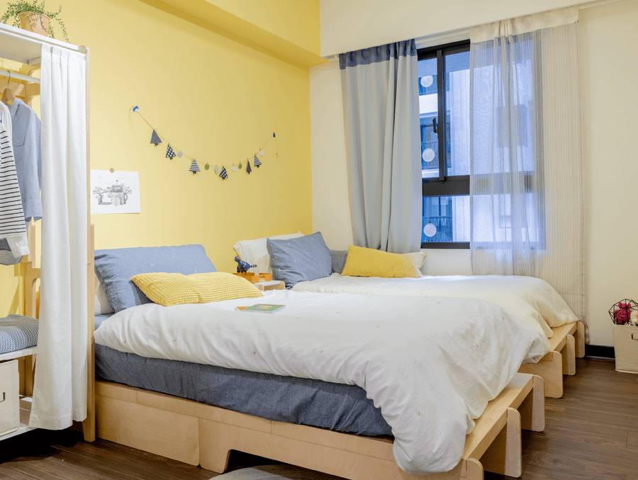 空間氛圍會影響人的心情,而最能直接改變空間氛圍的就是顏色。選用暖色系的顏色,不僅能讓孩子放鬆心情,擁有安全感,也讓親子在房間相處時更有溫馨的感覺。