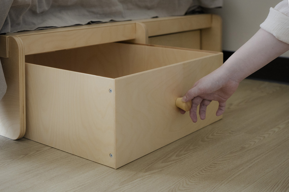 最後和大家分享一個規劃兒童房的細節,也是許多人最容易忘記的重點。收納不必侷限在「兒童」,只挑選容量小、尺寸矮的櫃子,隨著孩子年齡漸長,原本的收納很快就會不敷使用;爸媽反而應該在最初規劃時,就選擇能讓孩子從小用到大的收納櫃體,像是富含收納機能的多功能兒童家具,可以因應孩子成長後增加的收納需求,好好善用小孩房的空間。