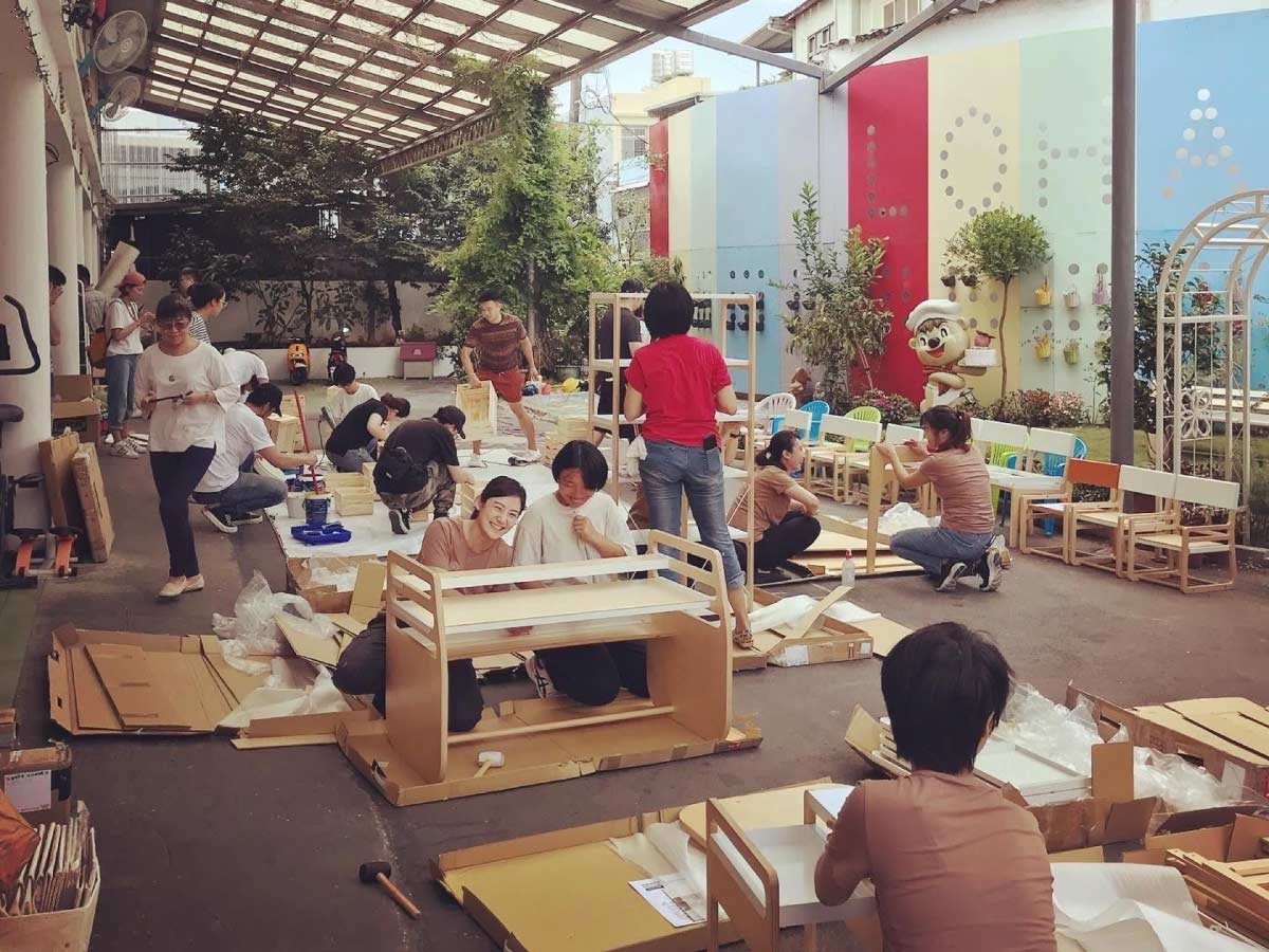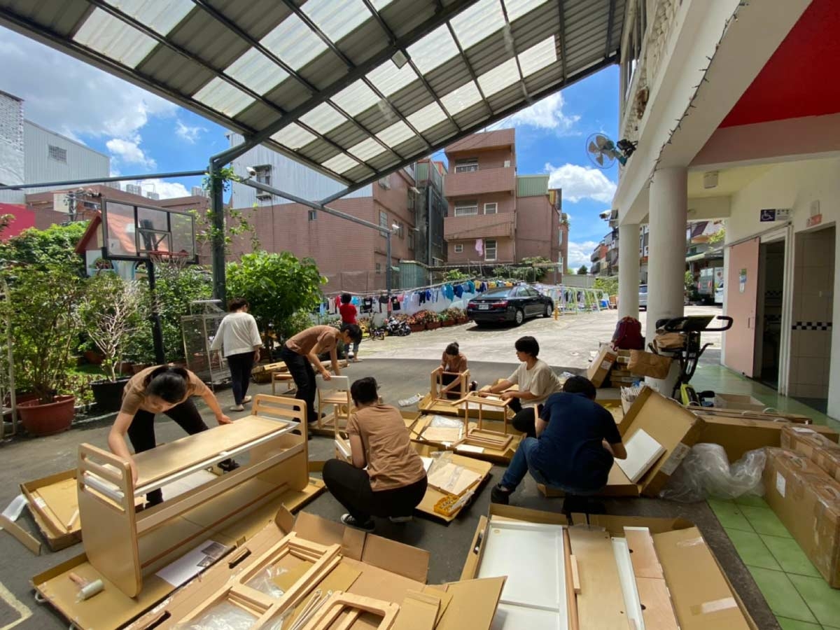 ▲ 在38度的高溫下組裝家具,大家揮汗如雨、差點中暑也只是希望能夠幫助孩子!