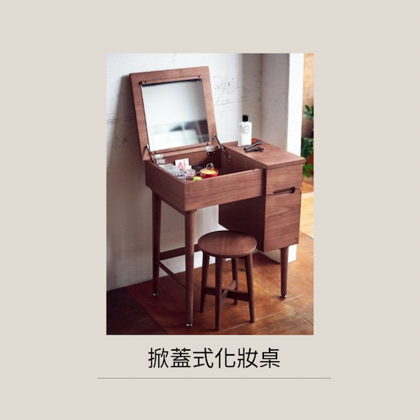※小提醒:選擇掀蓋式化妝桌推薦留意是否有油壓設計,開關時才不易發出碰撞的聲音。