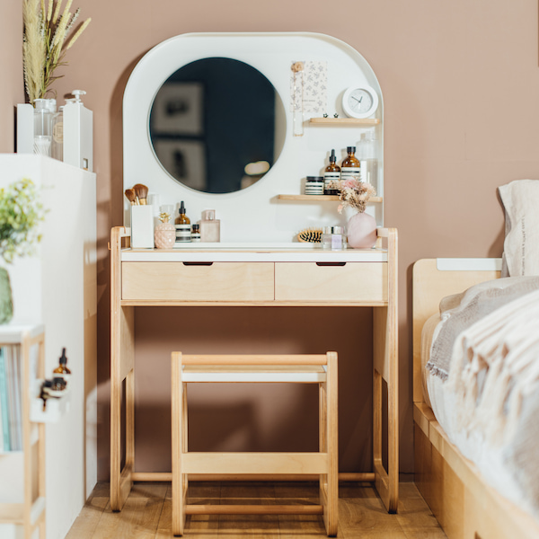 許多人因為房間太小,所以無法放進一般的化妝桌,像dcard上有人提到每天都只能站在全身鏡前,或是到浴廁空間化妝,但這樣不僅無法坐下好好地畫出精緻妝容,在化妝品的收納上也是一大問題!那房間坪數有限的情況下,該如何使用化妝桌呢?走走家具推薦你善用掀蓋式化妝桌、衣櫃式化妝台和走走化妝桌,如此一來不但能遊刃有餘地完成妝容、妥善收好彩妝品,更能把化妝桌兼當書桌提高實用性!不過這三種小空間化妝台的優缺點不同,推薦大家看完這篇文章好好認識,才能購入適合自己的化妝桌唷。