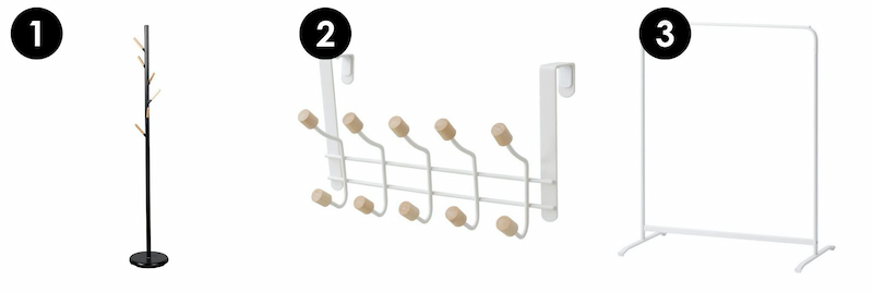 其中我最推薦的是3,但掛衣桿通常有一定長度,如果要放在空間有限的小套房、更衣室或是想玄關掛進門脫下的外套,可能就沒這麼適合。