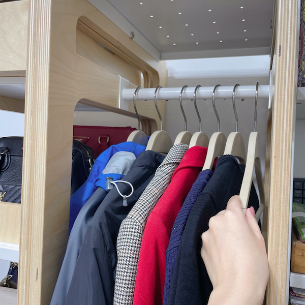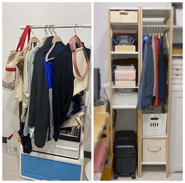 ▲ 雖然也是開放式的,但用模組衣帽包架掛外套,比原本的單一衣桿還要整齊。