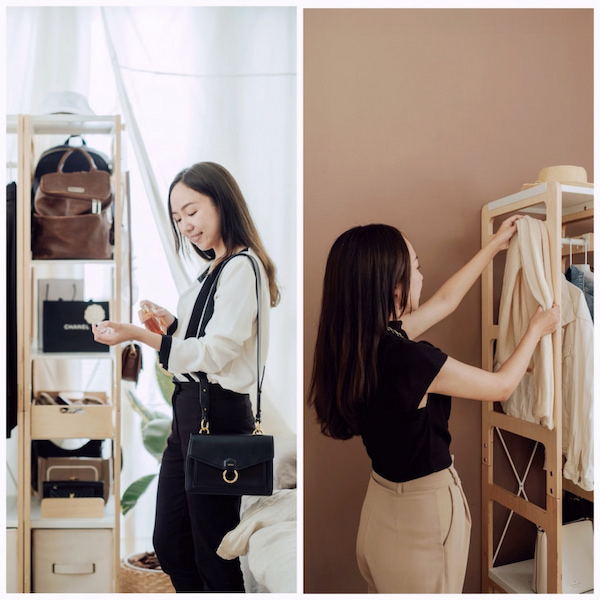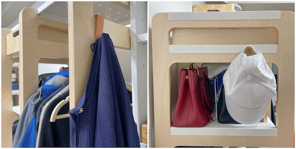 我也有幸搶先體驗,在工作室組起旗艦版衣帽包架,專門收納穿過的外套、所有包包,還有我工作會用到的道具。