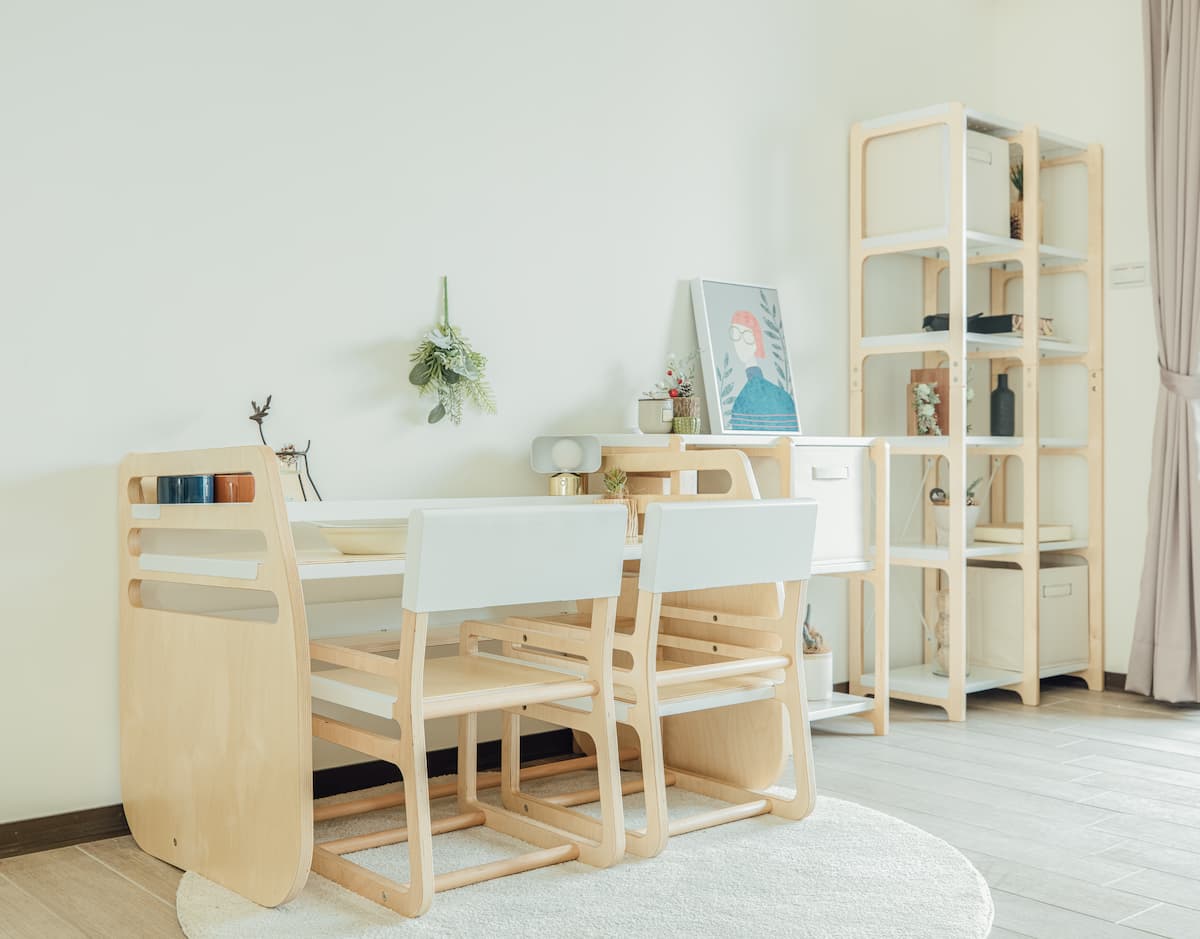 使用白色或原木色的家具,能一眼看出環境是髒亂還是乾淨,也能讓孩子學習維持整潔。