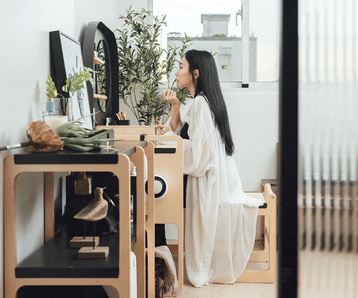 我很喜歡這件作品,奉行簡約生活的我,在這段時間裡全然愛上了這套家具,它讓我每天都想跟自己多相處一些,認真完整地把自己打理好、變得更美更有自信,彷彿離開家打開門之後的自己不一樣了。
