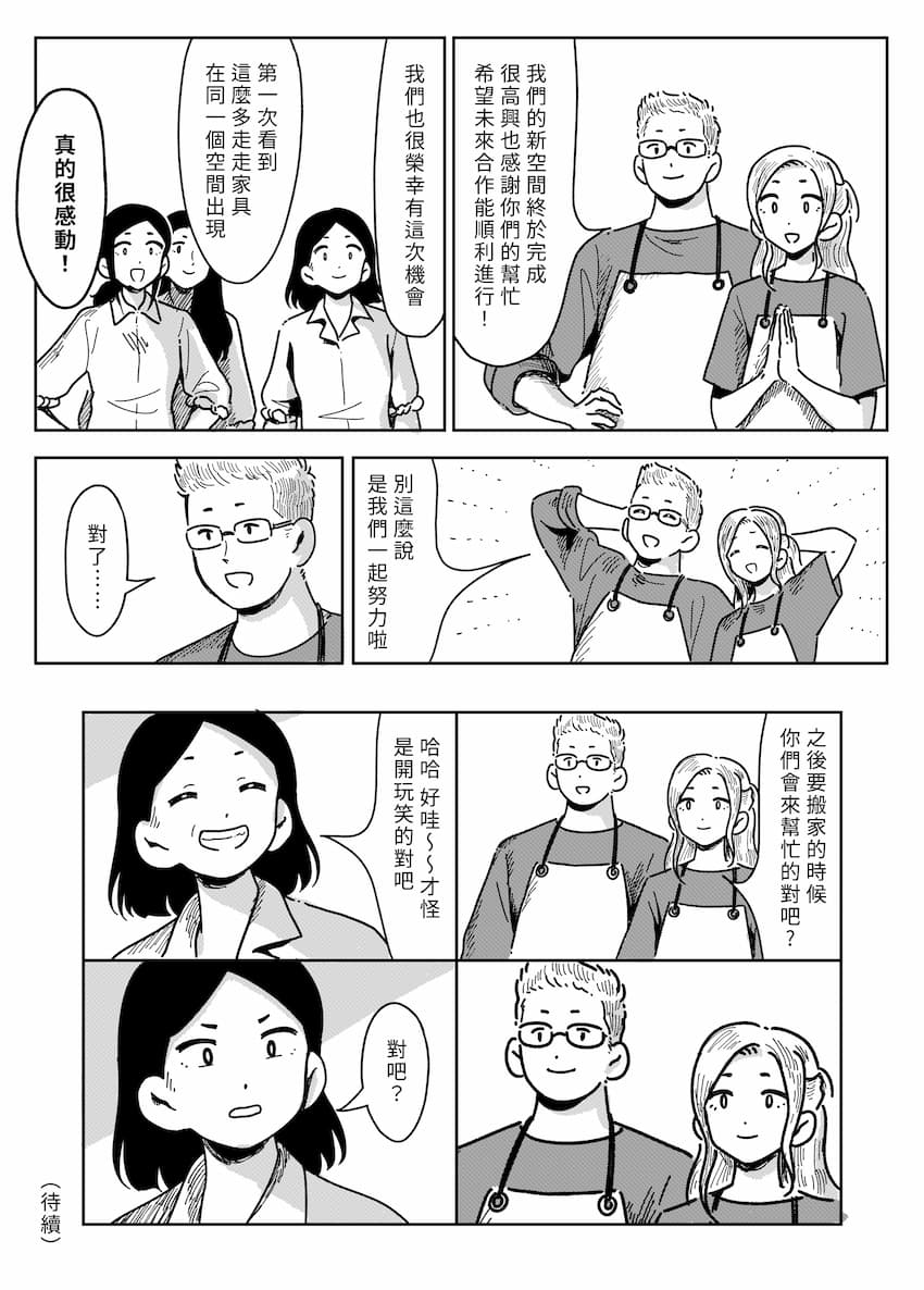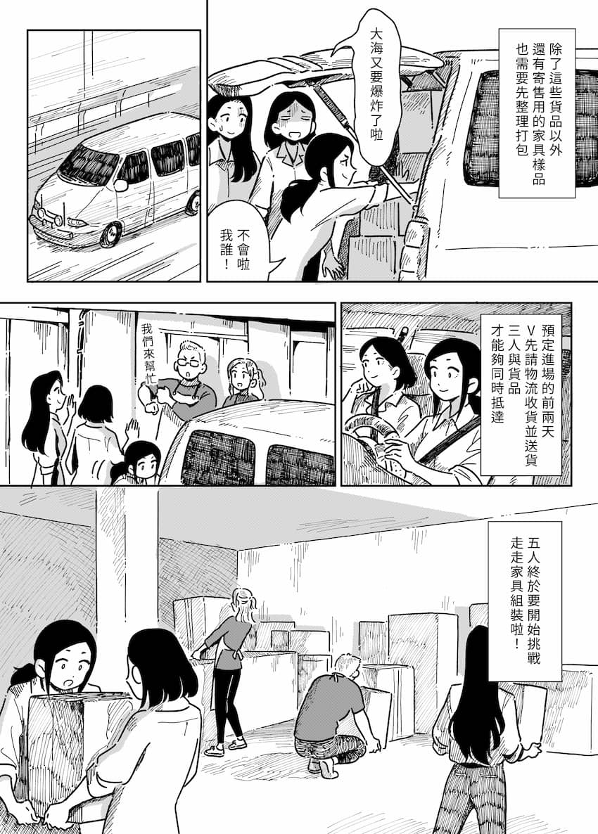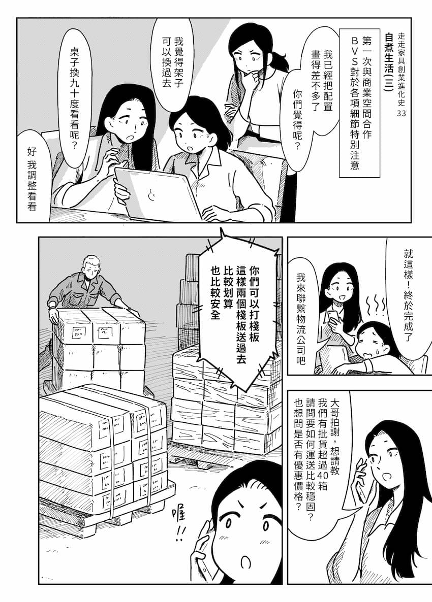 VOL.33 - 自煮生活(三) 迎來第一次商業合作的B.V.S. 帶著數十件以上的走走家具,正式進駐自煮生活,這個空間在歷經多次討論、精心配置、組裝定位到佈置,五個人的心血總算大功告成,到底最後的成果如何呢......!? 原作 / 走走家具 漫畫 / 貞尼鹹粥 特別感謝 / 自煮生活 Cooking & Living