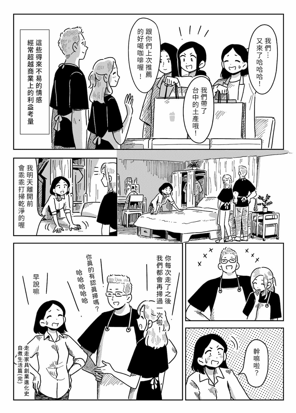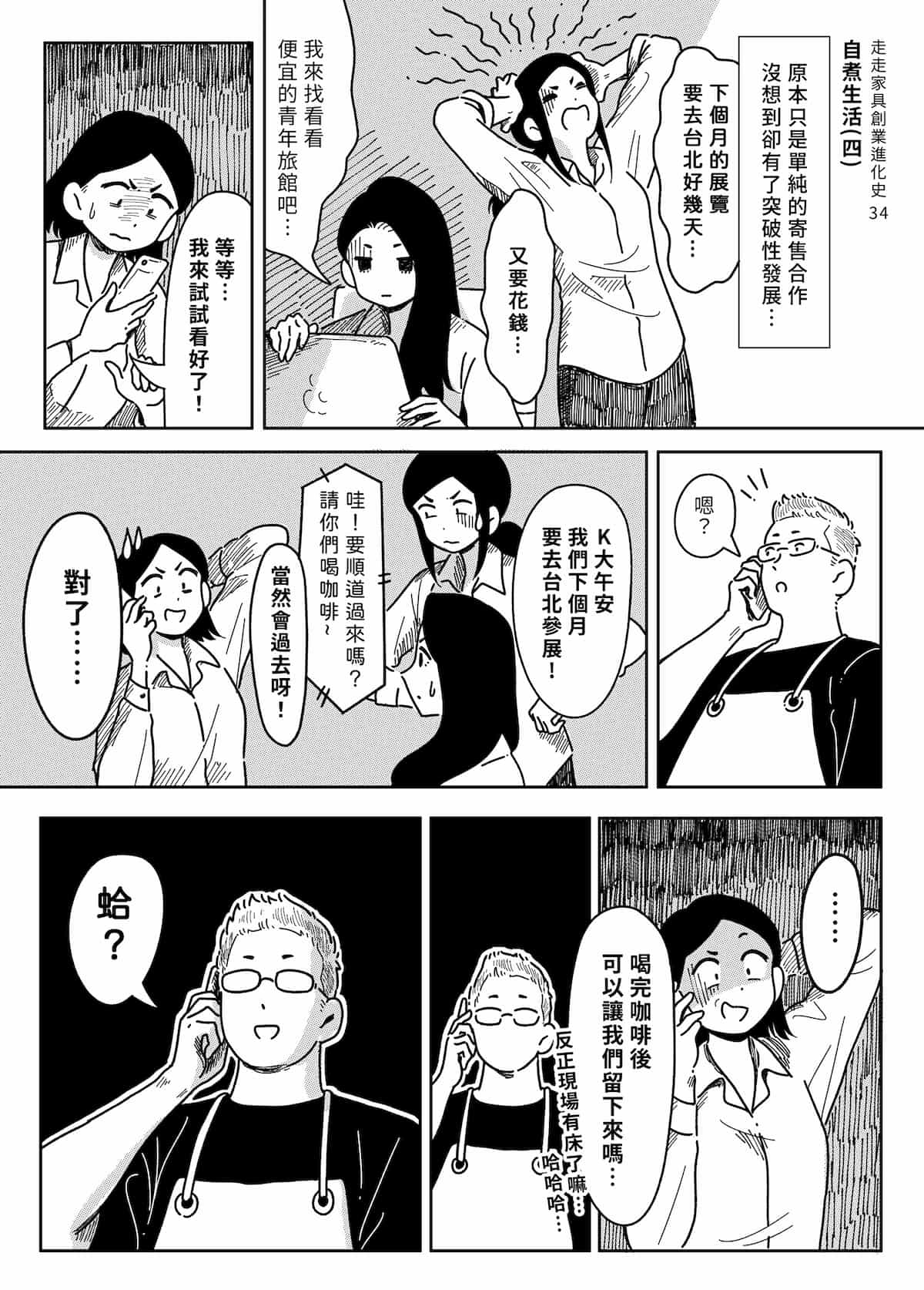 VOL.34 - 自煮生活(四) 和自煮生活的第一次商業合作後,雙方漸漸成為要好的朋友,經常互相交流、彼此打氣。創業初期的B.V.S.經常出差,為了節省開銷,提出了一點小小的要求......!? 原作 / 走走家具 漫畫 / 貞尼鹹粥 特別感謝 / 自煮生活 Cooking & Living