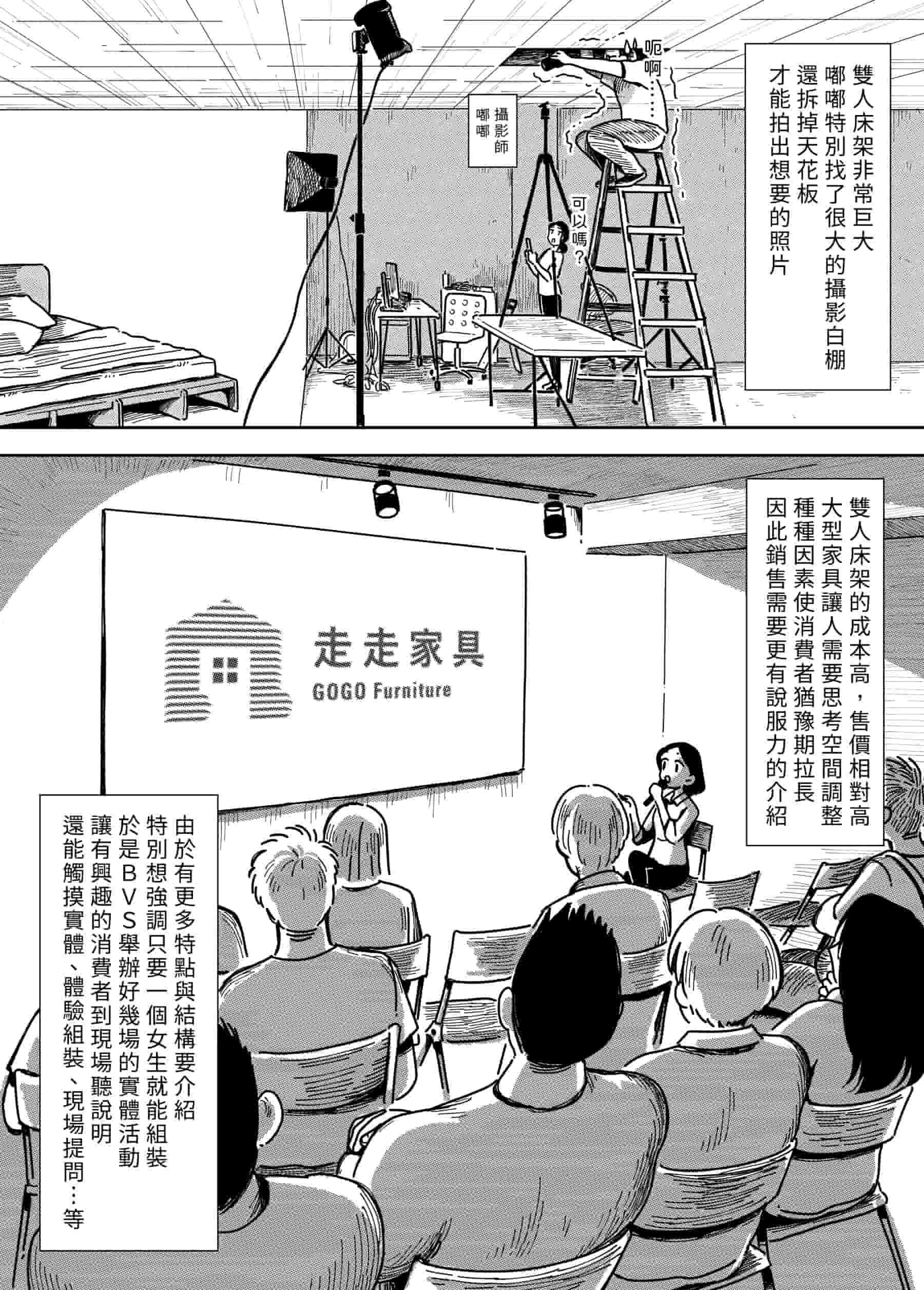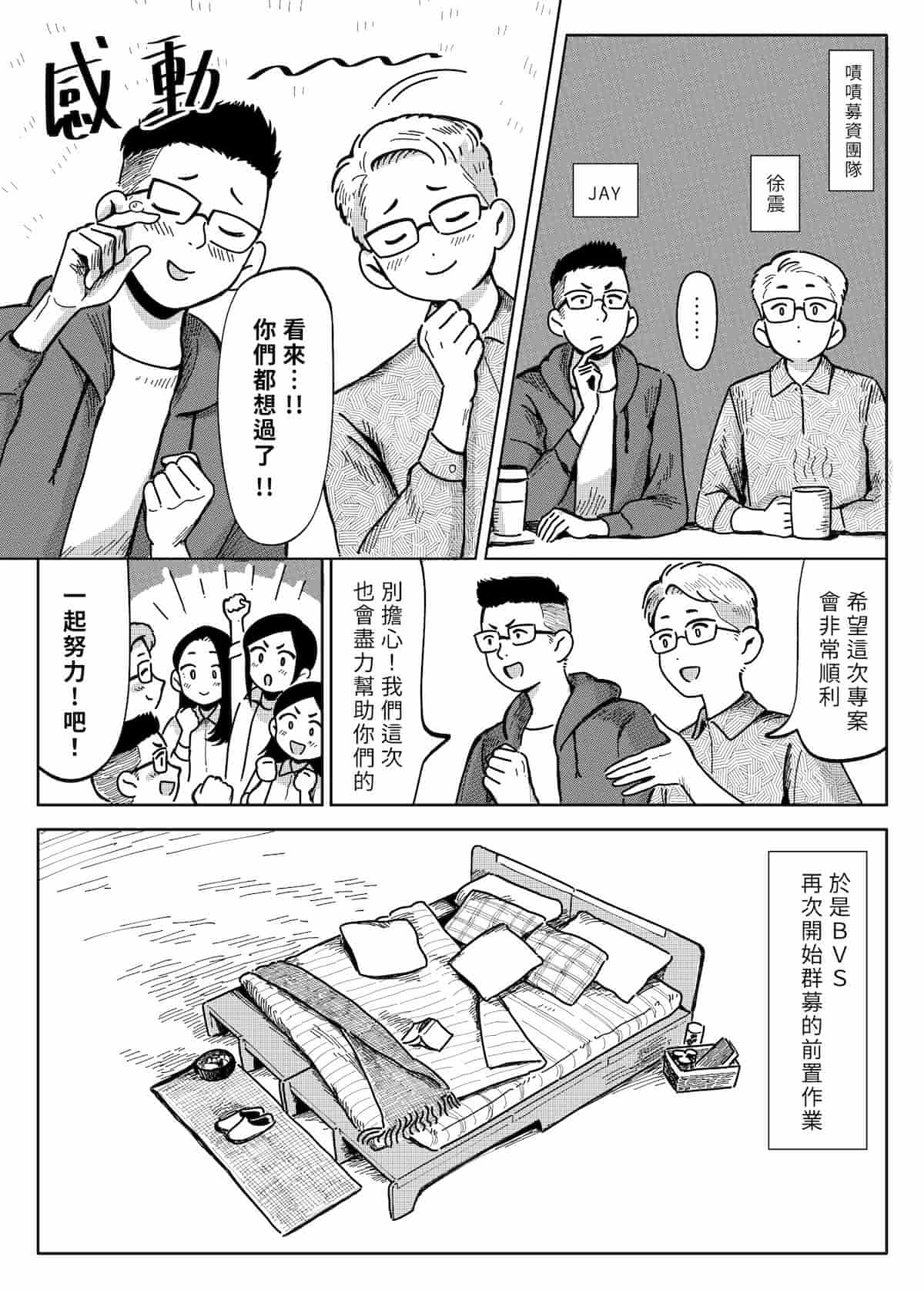 VOL.38 - 超強床架的誕生(四) B.V.S.決心重整旗鼓,挑戰第二次上架嘖嘖!首次的挫敗讓雙方都很緊張,因此進行多次會議討論,避免重蹈覆轍。由於雙人床架是當時集資歷史上,從未出現過的大型家具品項,究竟B.V.S.這次會如何籌備呢? 原作 / 走走家具 漫畫 / 貞尼鹹粥