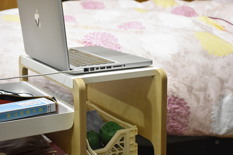 ▼當沒來由想發懶的時候,聰明的她會把移動邊架移到床邊,將大小剛好的筆記型電腦置於上方平面,伸手一勾,便打造出最佳的追劇配備。