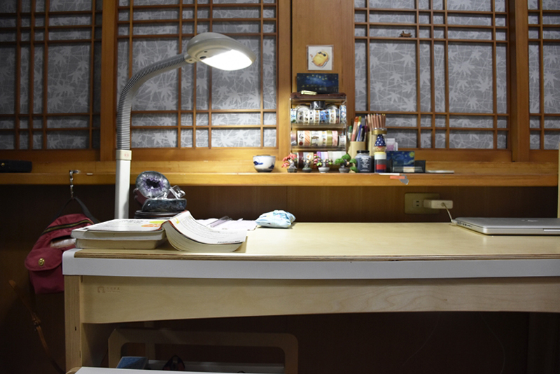 「 原本的桌子比較小,現在桌面很大,能放很多書,可以邊看電腦邊寫筆記,旁邊還能放參考書呢!」