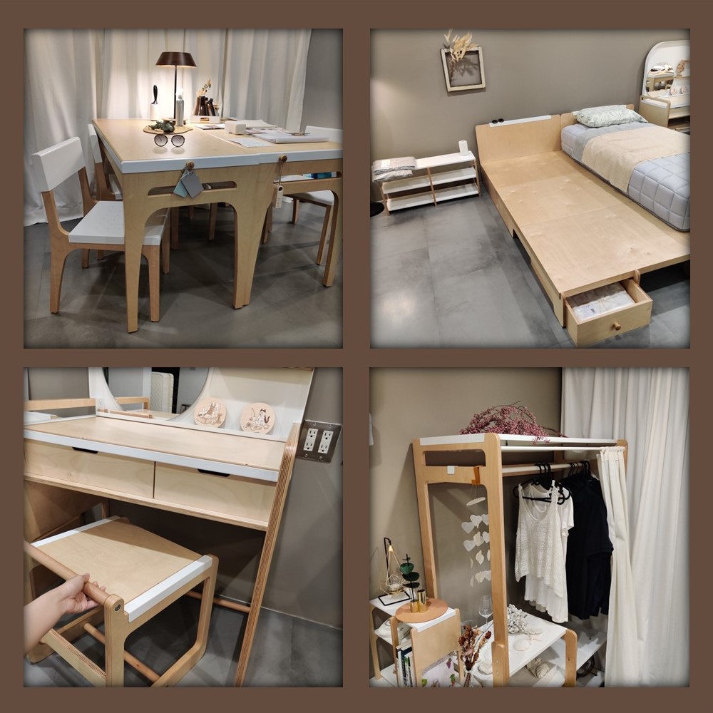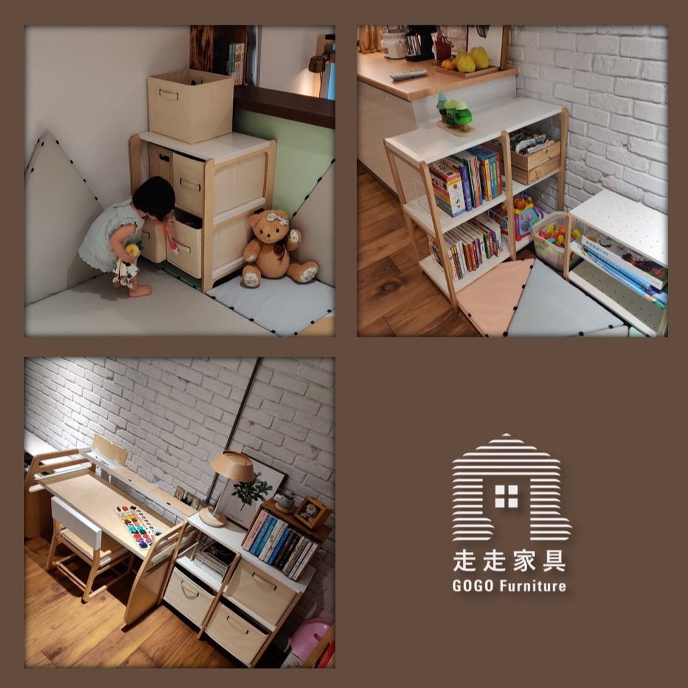 走走的家具我非常推薦給小家庭和租屋族,特別是有小孩的話你會覺得很安心,因為他們的木料是通過歐盟甲醛E1等級認證的,而且所有設計都是圓角,小孩在家撒野也不怕尖尖的撞破頭或家具垮掉,我自己是特別喜歡他們的桌子和層架,還有一個搭配梳妝台的小凳子我莫名愛上,他們有些難以言喻的小細節現場看真的超吸引人