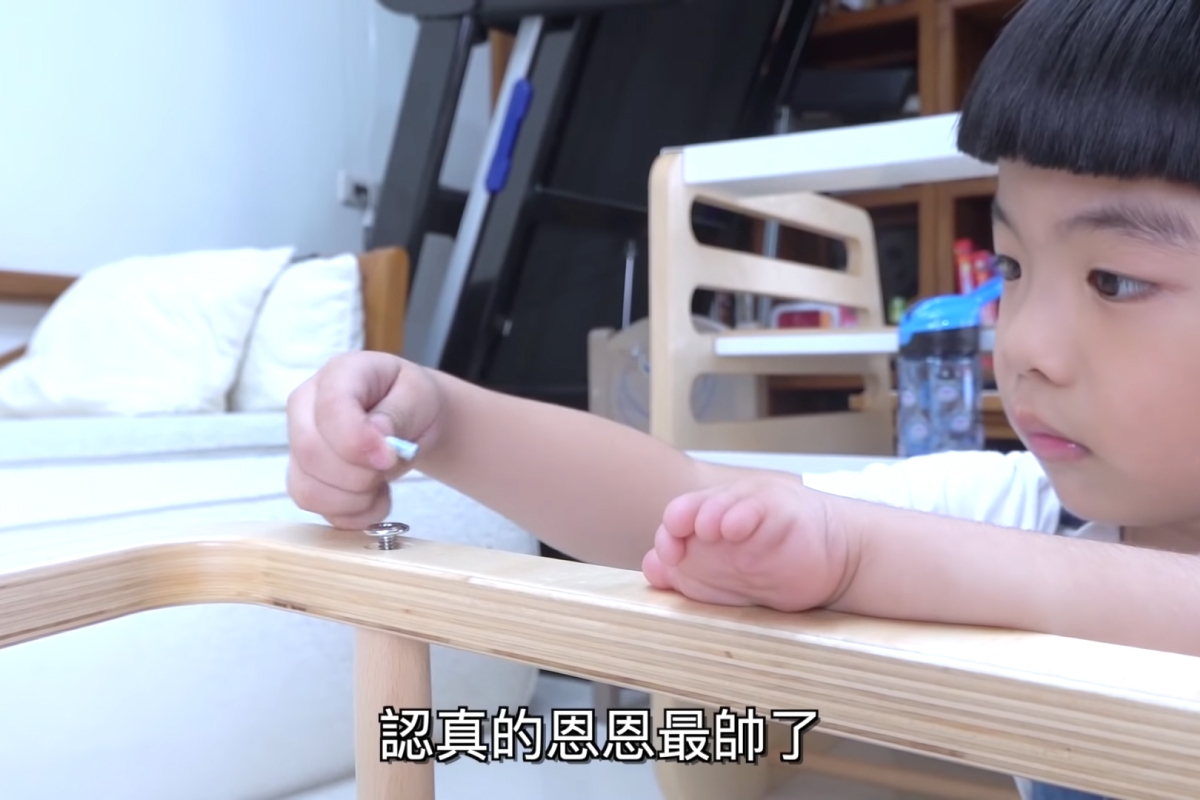 即將要上小學的恩恩老師組裝第一張自己的書桌。