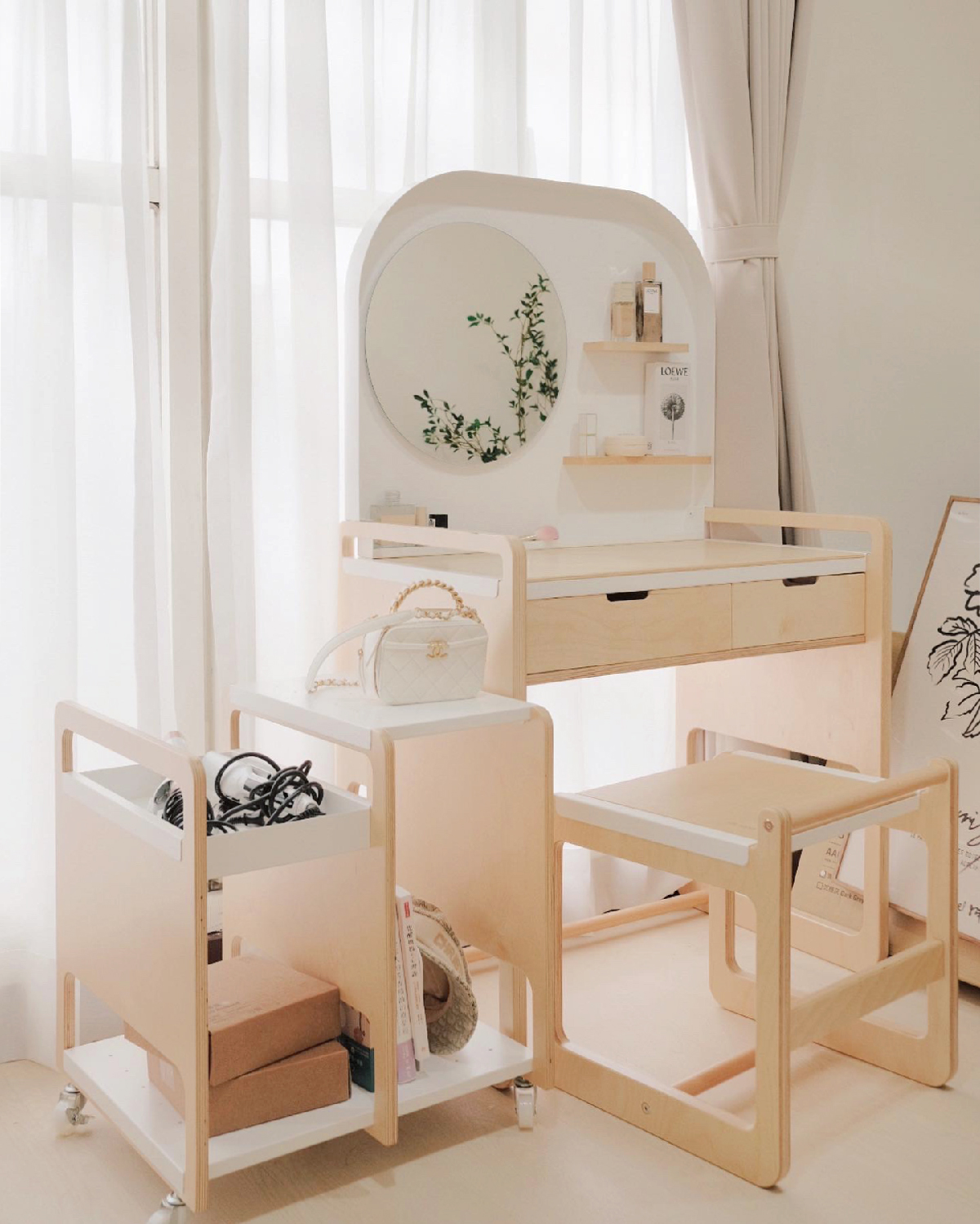 接著,登場的是化妝區「走走化妝桌椅組+移動邊架」