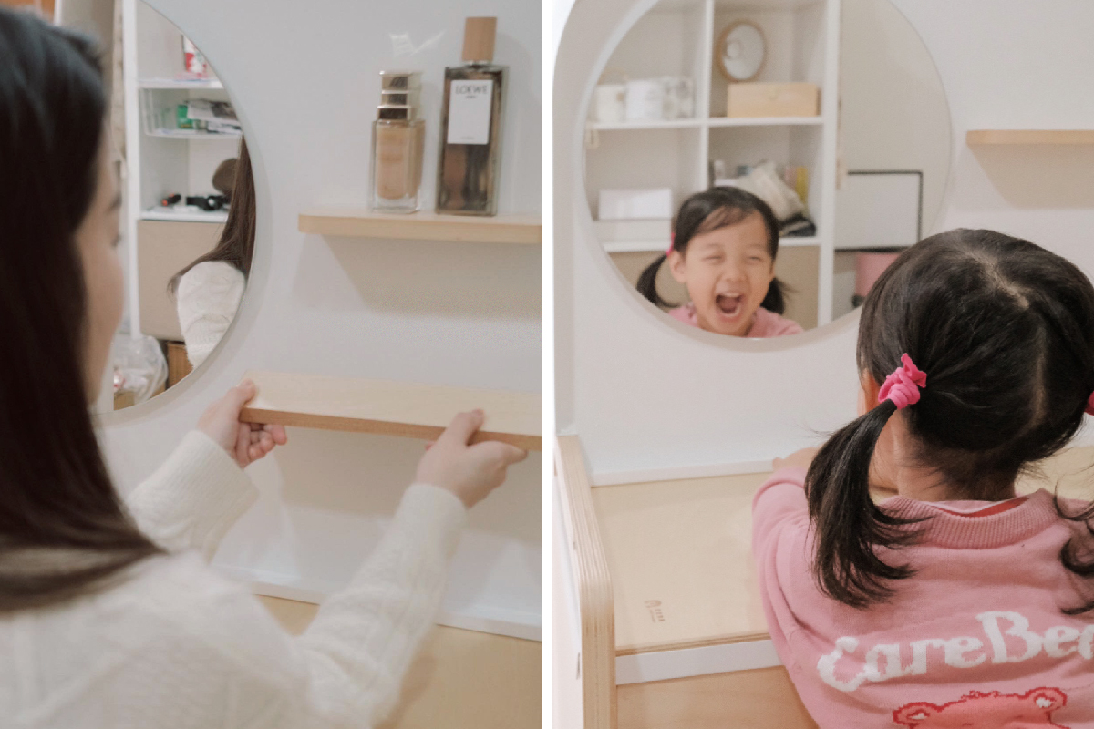 ▲ 鏡子跟層板都是磁吸式的,可以根據自己的喜好調整高度,尤其是鏡子可以根據身高輕鬆調整,對於身高特別嬌小的我真的很友善啊,就連小孩要照鏡子也沒問題!