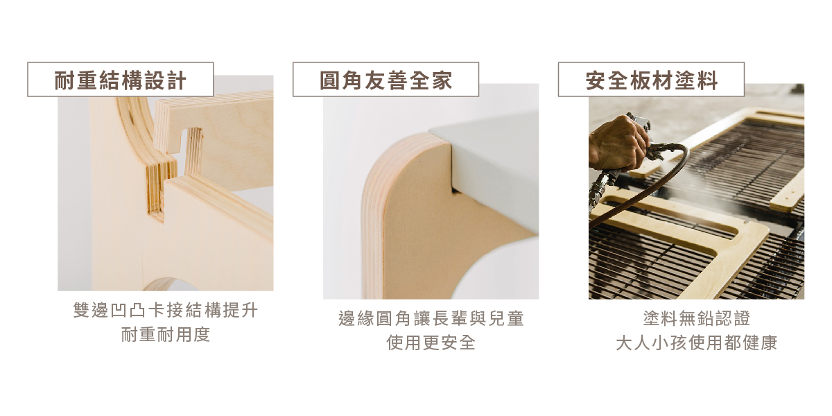 處處都可以感受到走走家具的用心,像是「圓角設計」也是家長們很在意的點,走走家具都幫我們考慮好了!即便家中有小孩,也不用擔心撞到尖角受傷,所以我們家兩姐妹成長桌椅也是走走家具的喔!