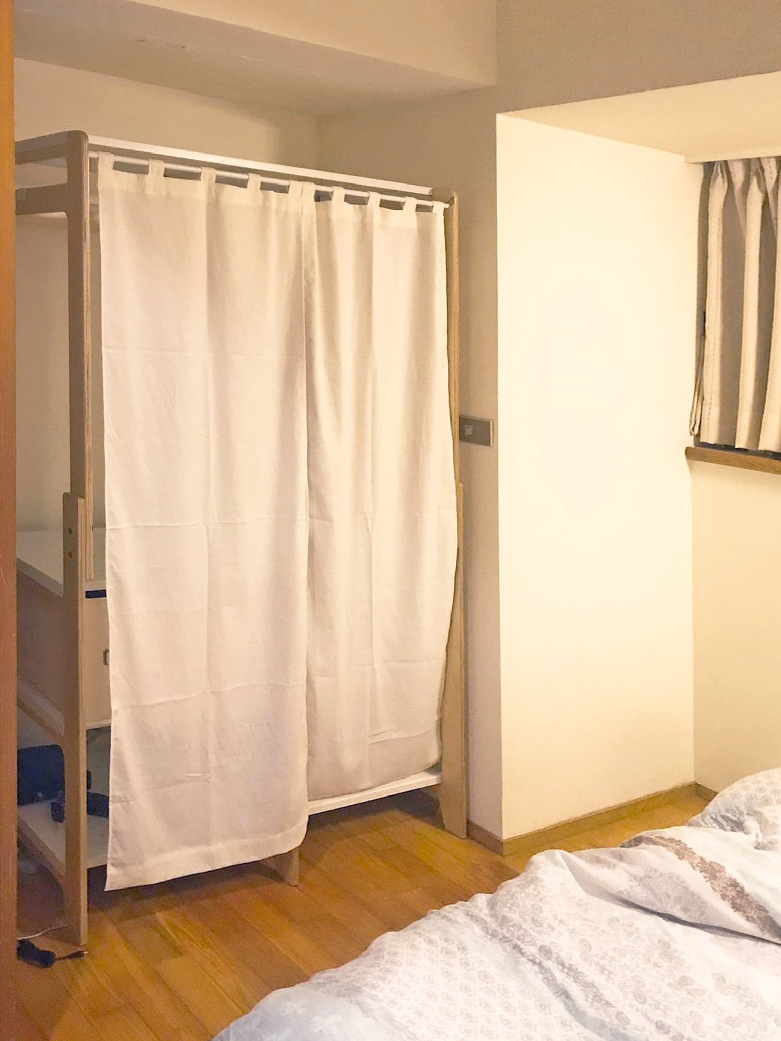 ▲ 使用完後直接將布簾拉上,非常輕鬆又方便。我想了解更多〈 走走衣架〉