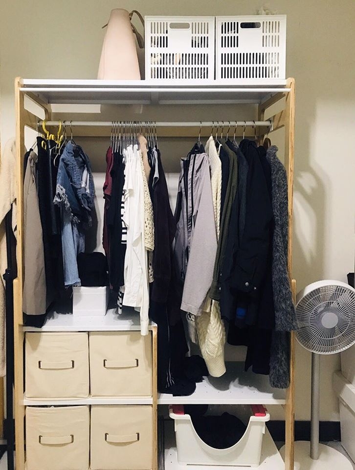 3. 需要放置「只穿一次還沒要洗的衣服」的人。這個放在玄關或臥室都滿適合的,吊掛起來也可以讓衣物通通風,下面的層板還可以放個包包、鞋子、安全帽,或是收納其他外出用品。