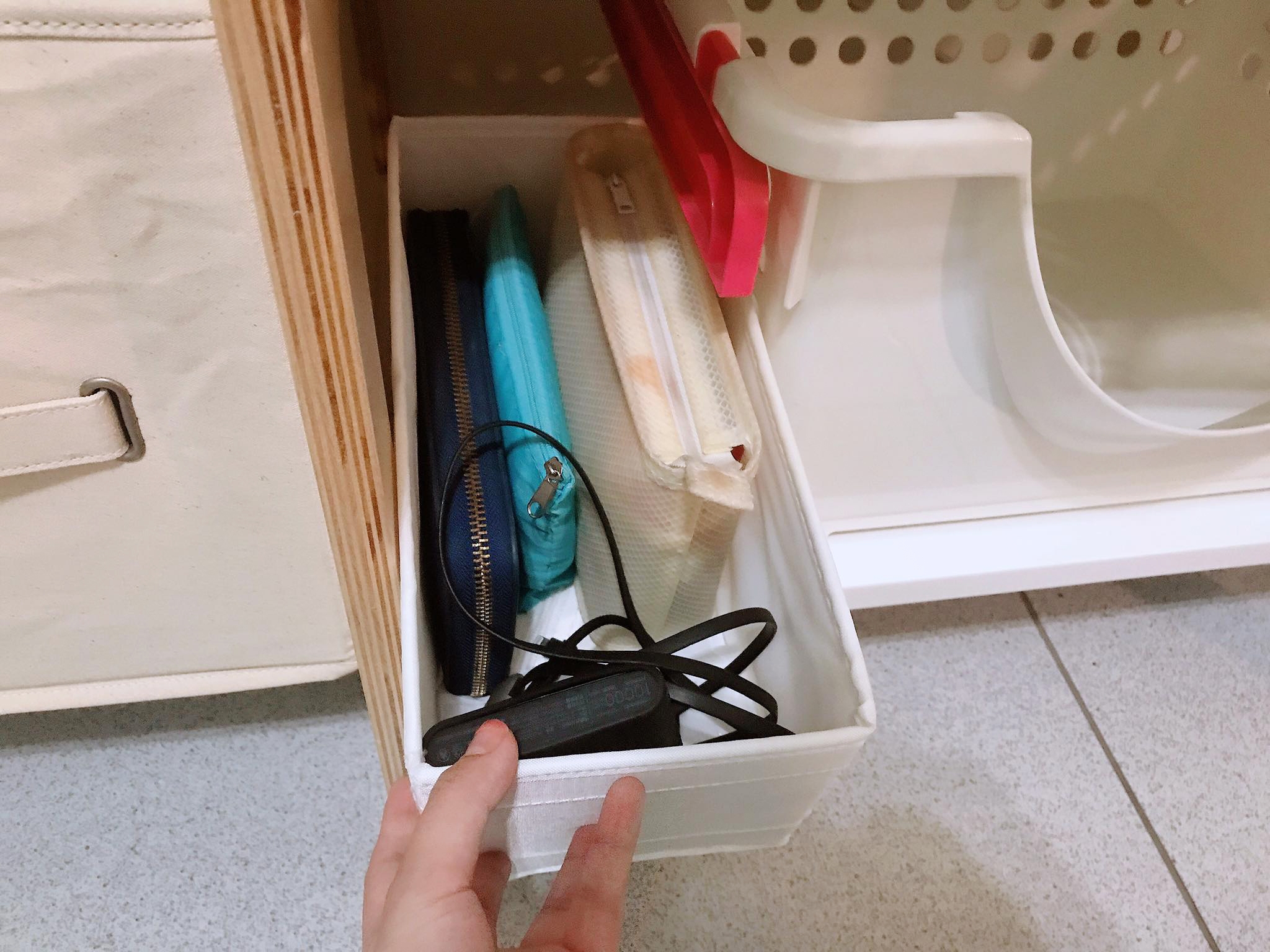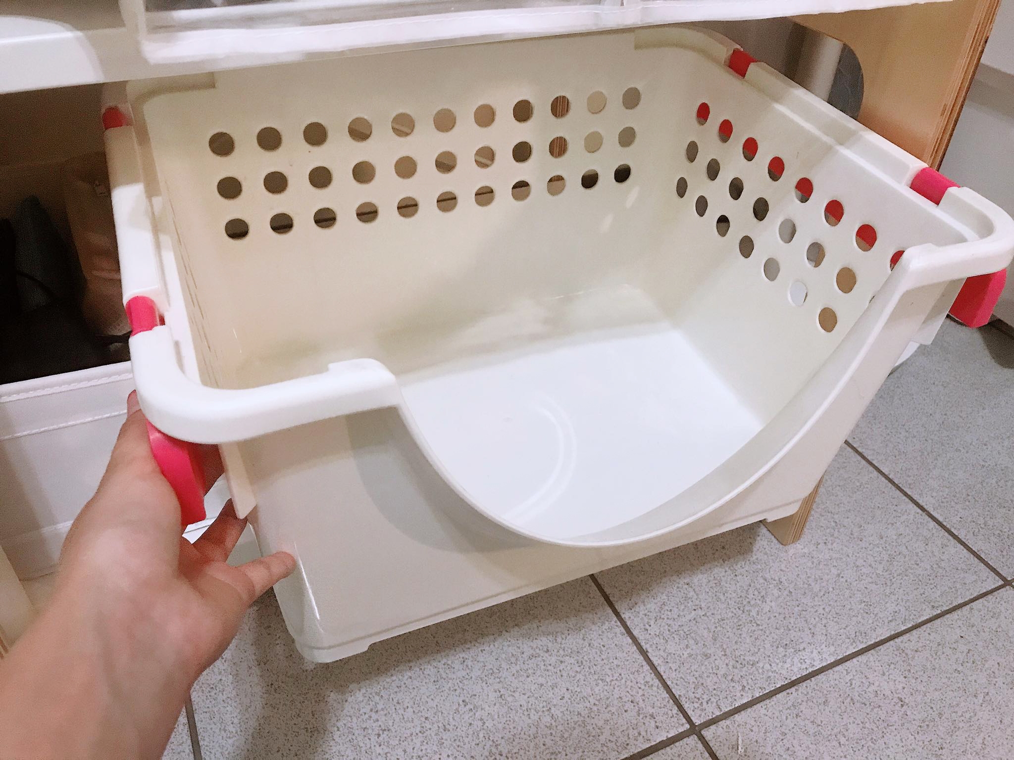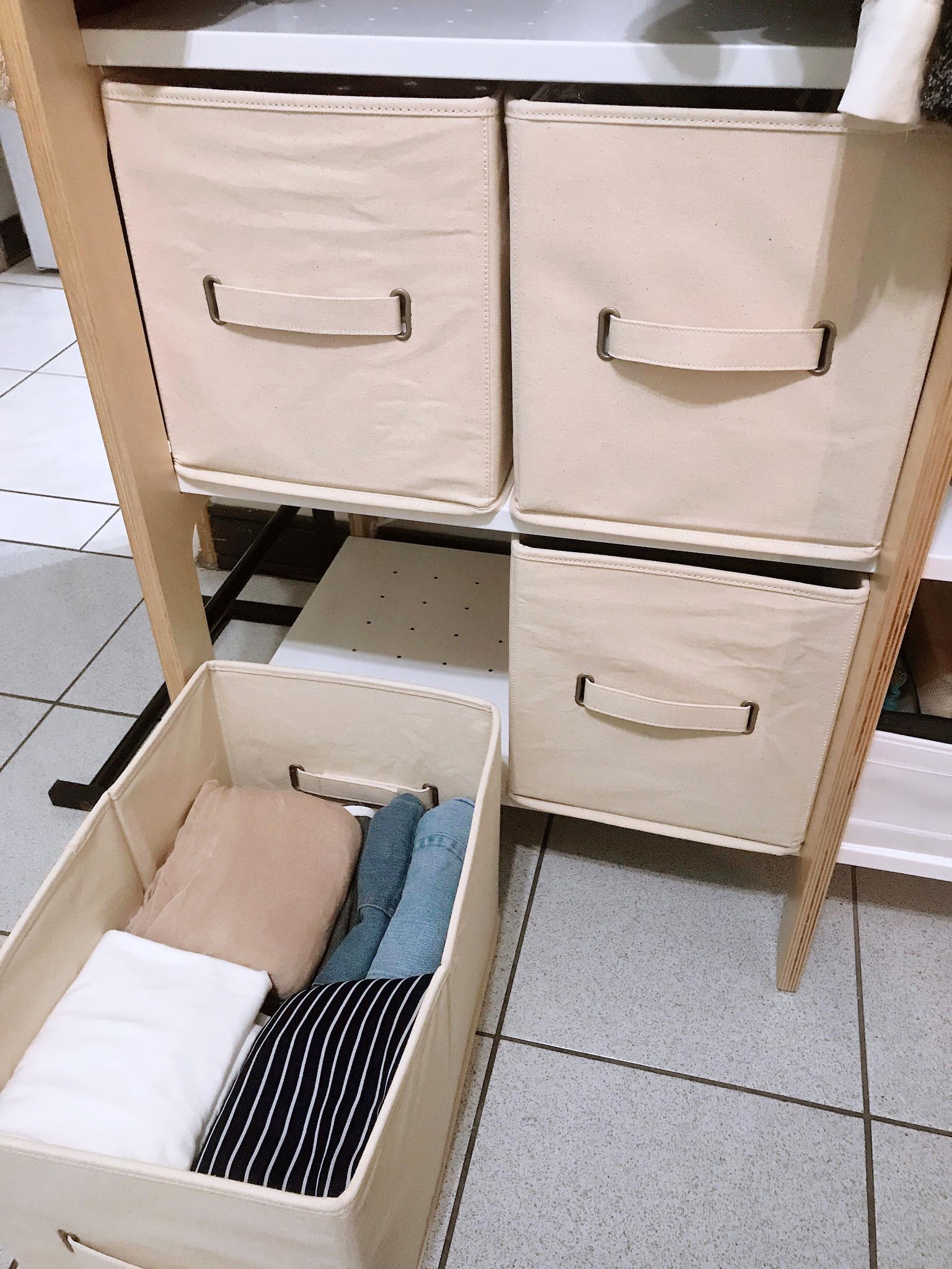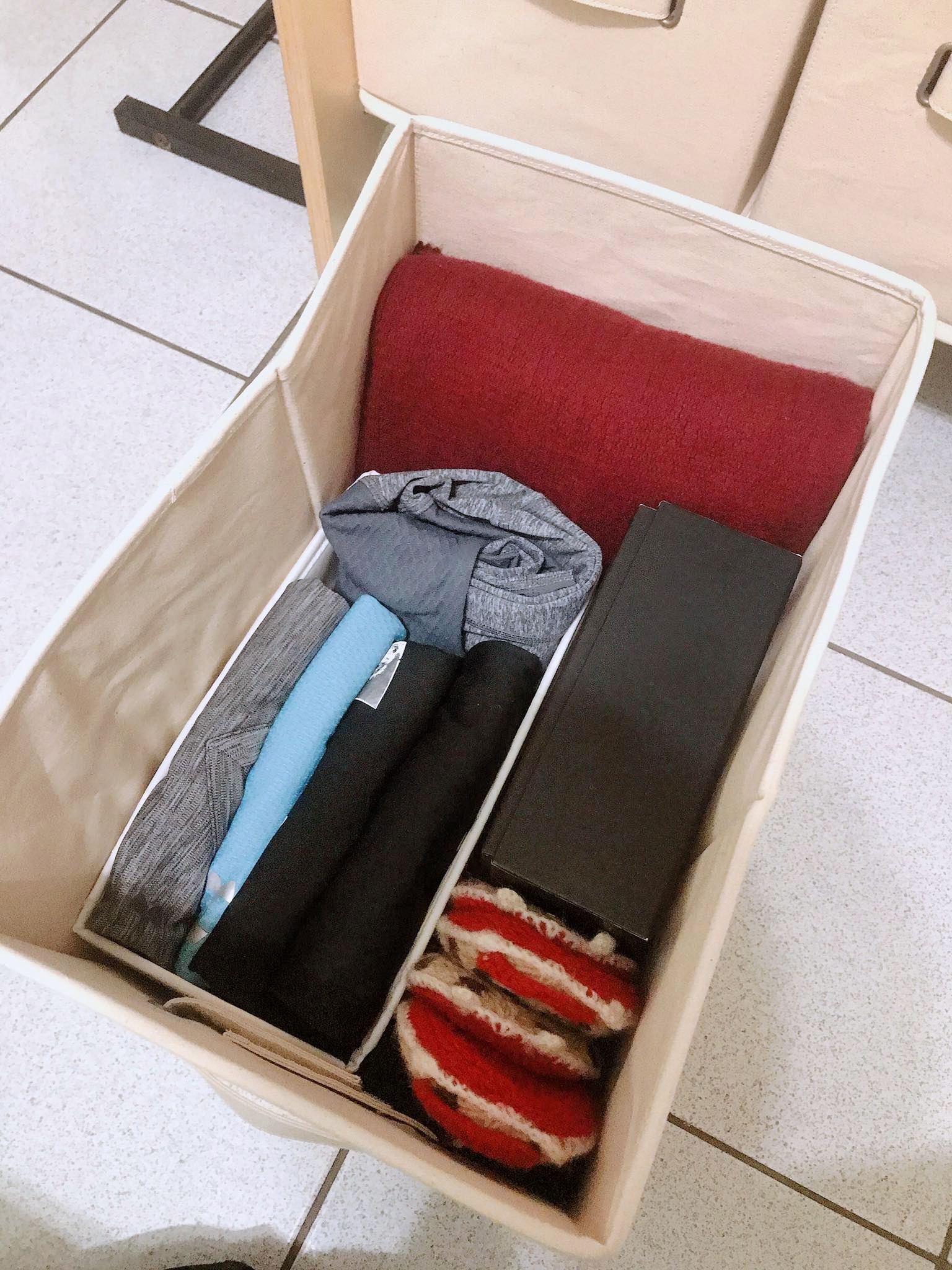 ▲ 布籃的收納之前有寫過,就是把現在用不到的好好折進去XD可以來這邊複習〈 開放式走走衣架如何使用 〉
