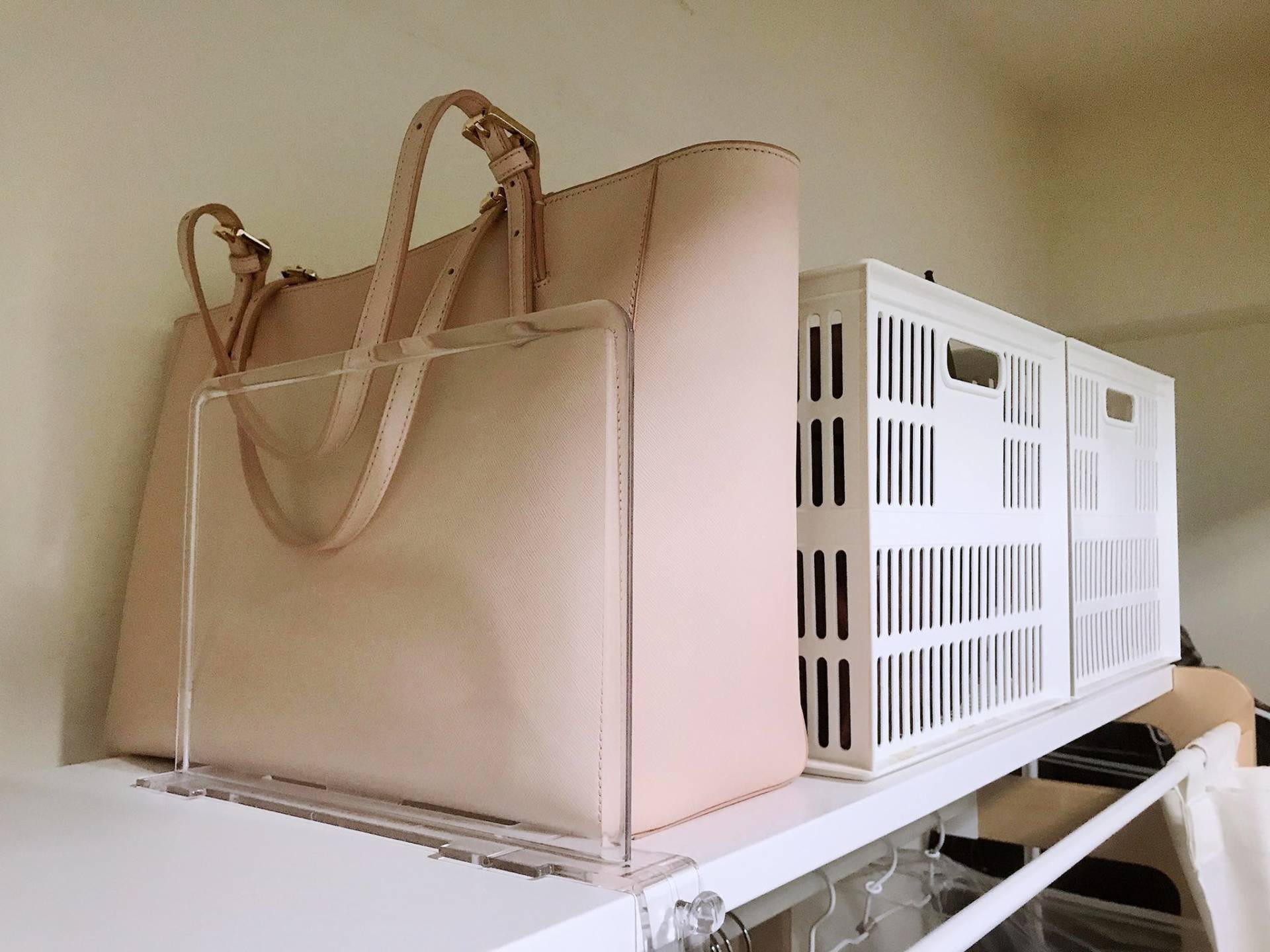 ▲ 再來看一下樓上。這個透明分隔版單純就是我強迫症發作,覺得包包自己站在這邊很單薄,一定要有個依靠,所以從美國扛回來的。可是我真的覺得這個分隔版很好用,用在書架上也很棒呢~有沒有廠商要做一下類似的東西賣,我一定團購。