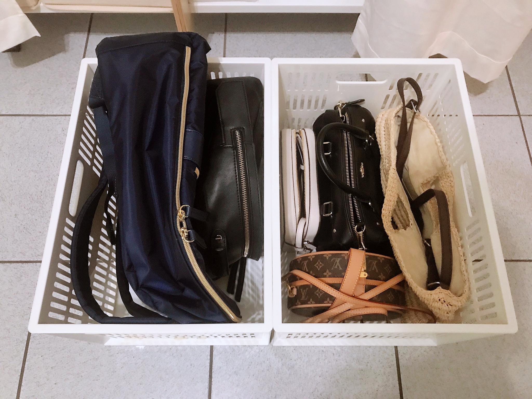 ▲ 兩個收納籃裝包包也是超剛好,一個後背,一個肩背。為了維持現狀決定不再買新包包了XD