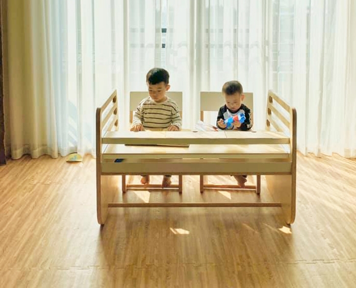曾經有朋友問我⋯這個桌板可以任意變換高度,感覺小孩搗蛋亂移會很危險吧!?使用一個月後我放心了⋯這個情況完全沒發生!超皮的三太子連搬都沒搬!因為它是很有份量的!頂多在桌子椅子爬上爬下!