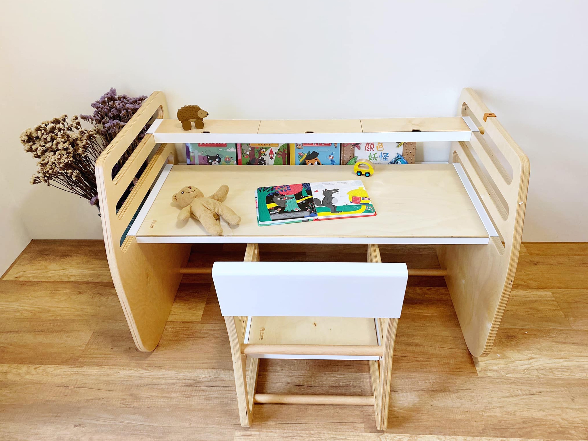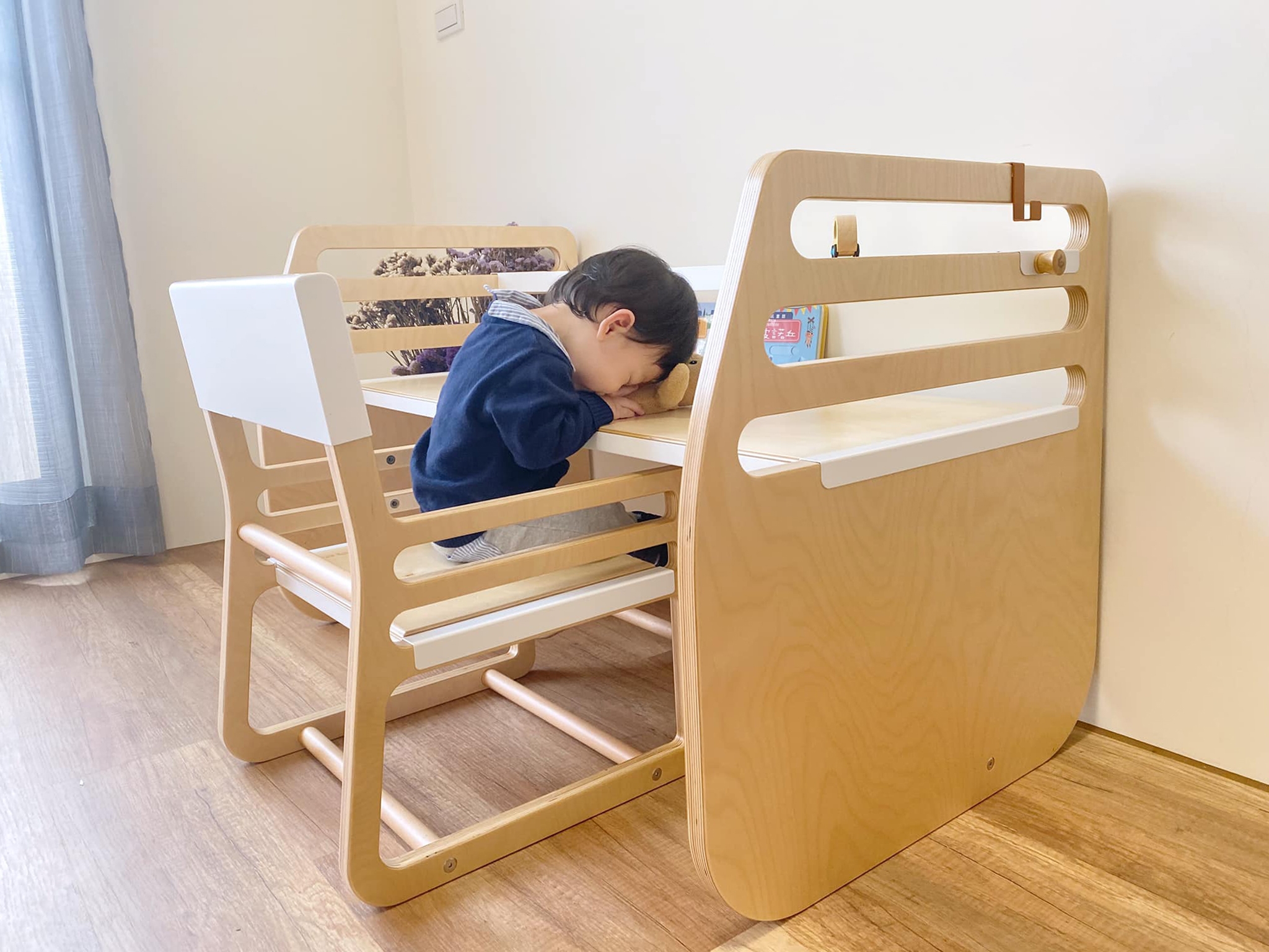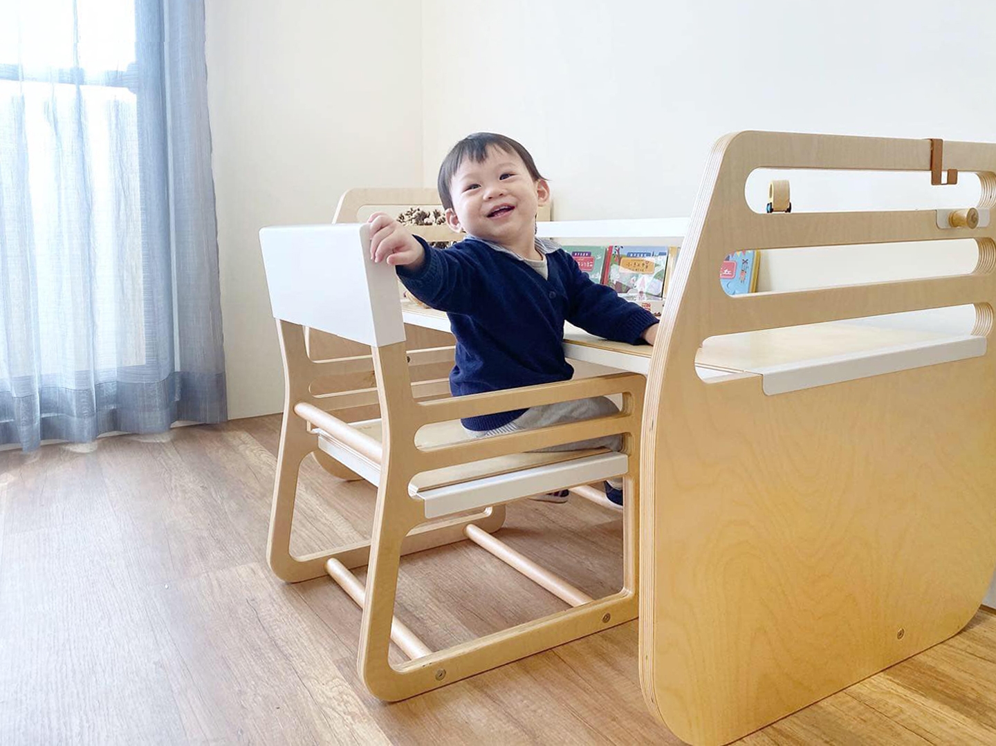 孩子還不會說話及閱讀、雖然喜歡書本但還不會讀、也還是會衝動把書撕爛。可是啊,看著他坐在書桌前,拿著書本有模有樣的認真神情,抓起玩具藏不住的雀躍笑容,我們知道,這個房間、這組走走成長桌椅,將陪伴我們一起創造更多美好的親子時光。