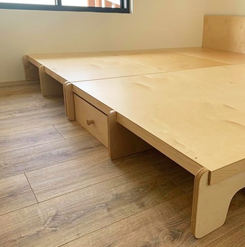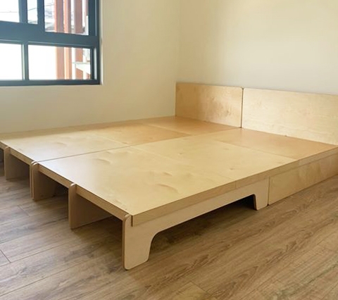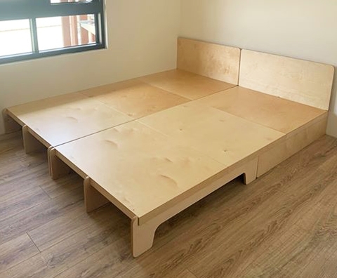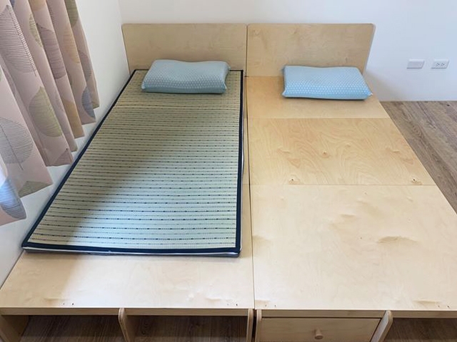 尤其官網有一張日式榻榻米墊子放上去的照片,根本一秒變和室,不用床墊就可以當個遊戲場所也棒棒,可以玩桌遊,親朋好友來也不怕沒地方睡跟休息,因為可以再分解成兩個單人床,整個看起來就是個架高木作!