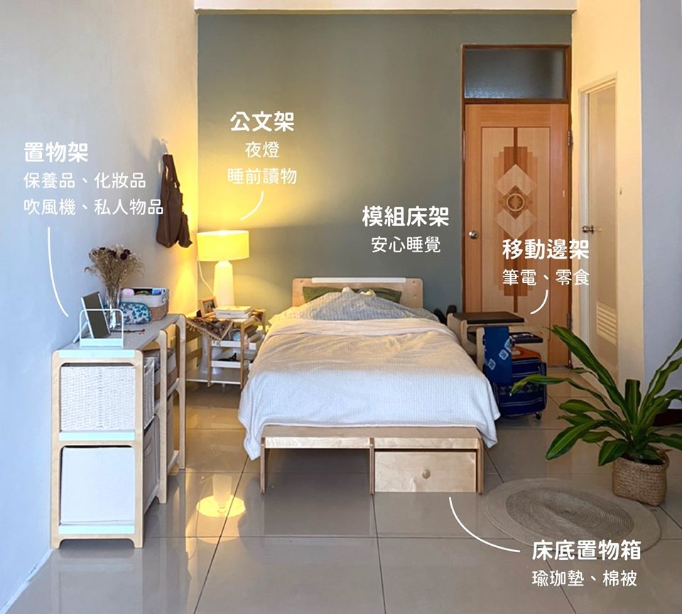 [ 模組單人床架 ]、[ 床底置物木箱 ]、[ 走走置物架 ]、[ 走走移動邊架 ]、[ 走走置物布籃 ]