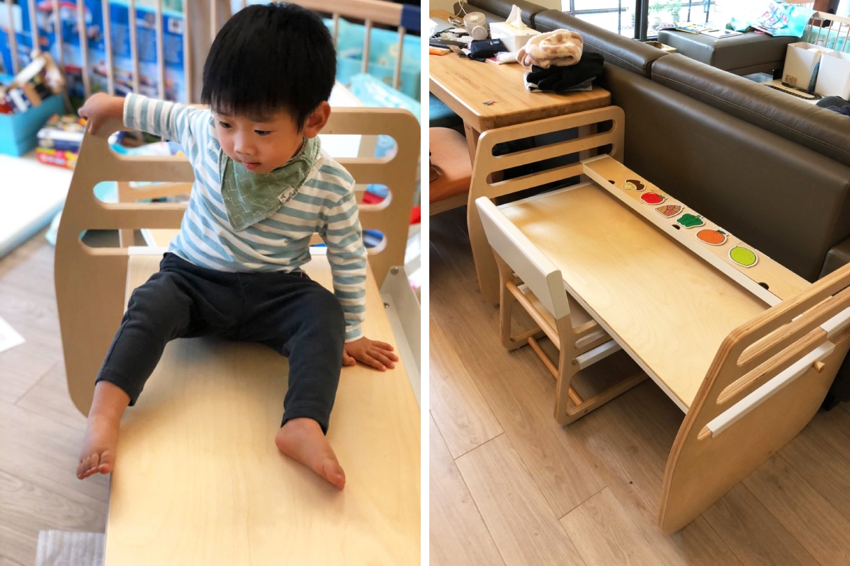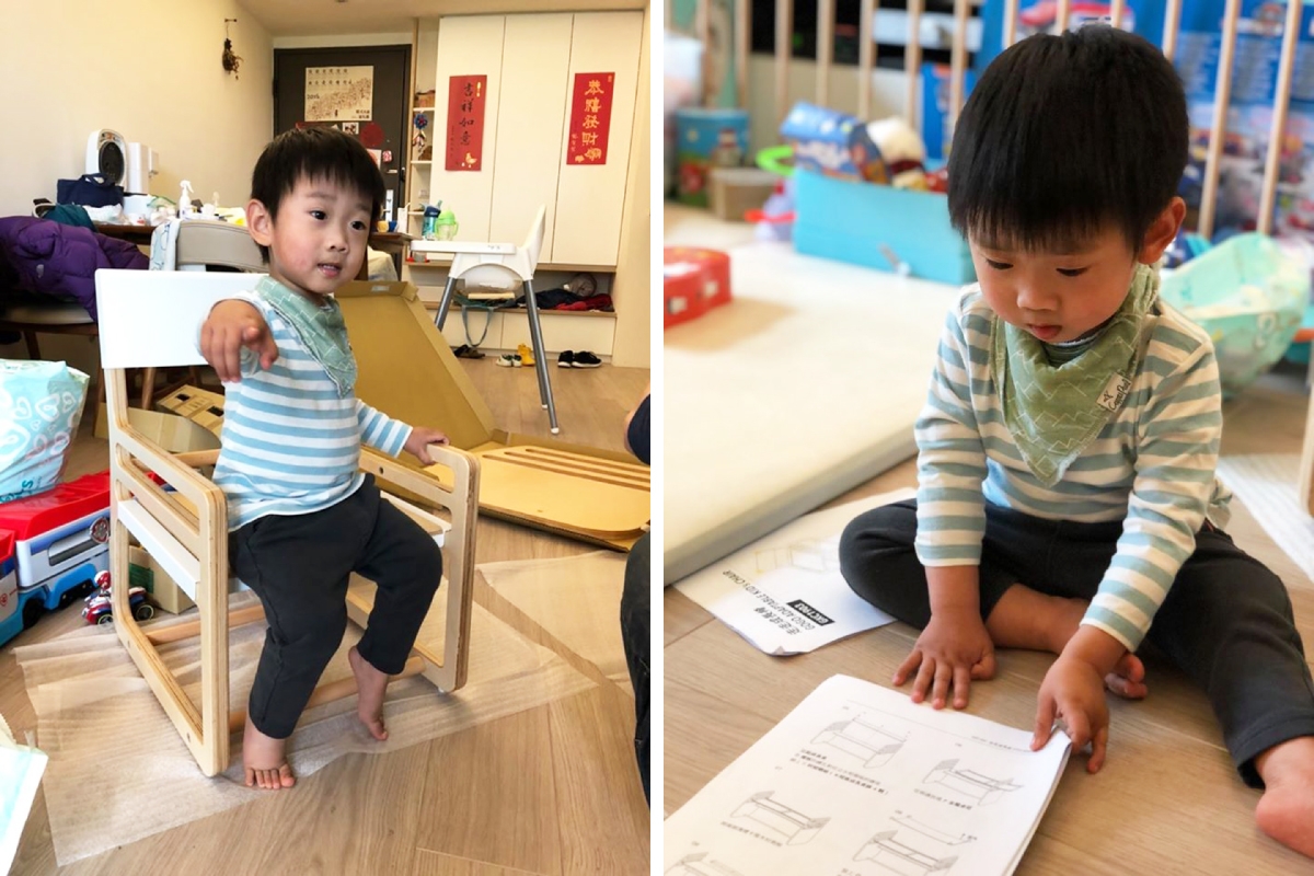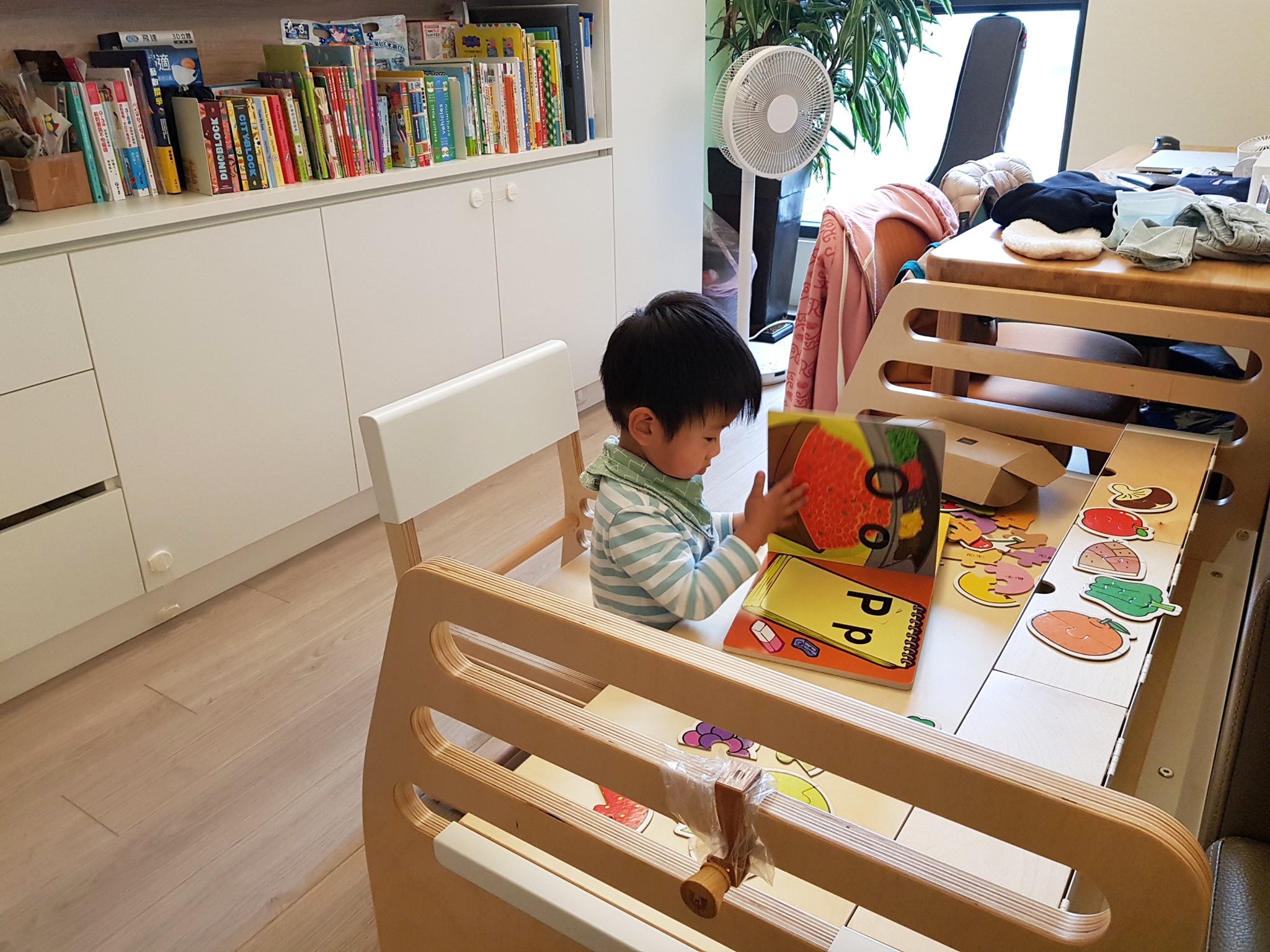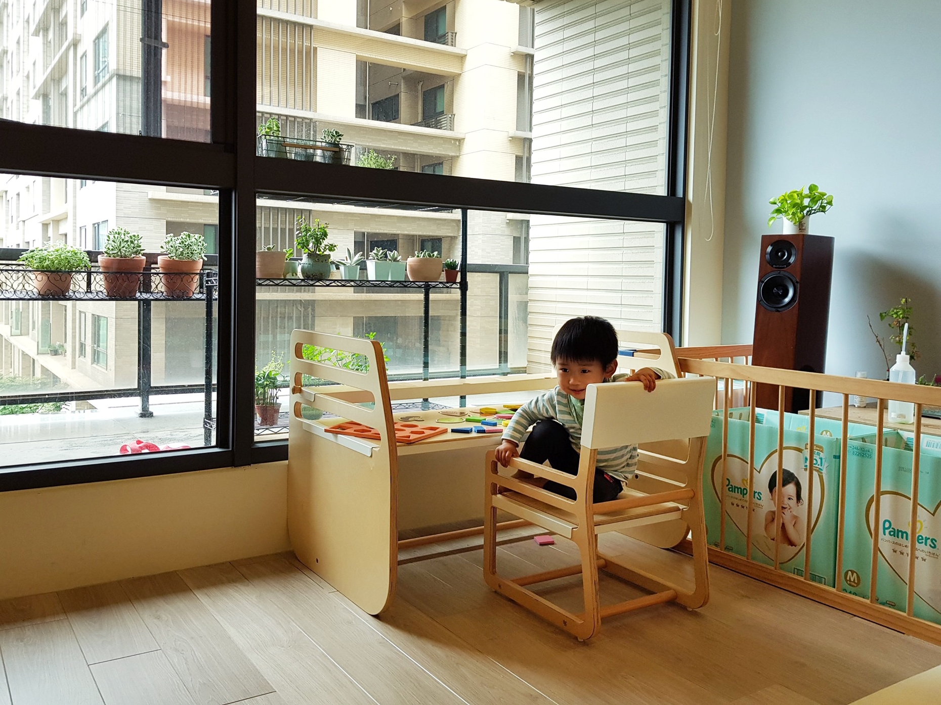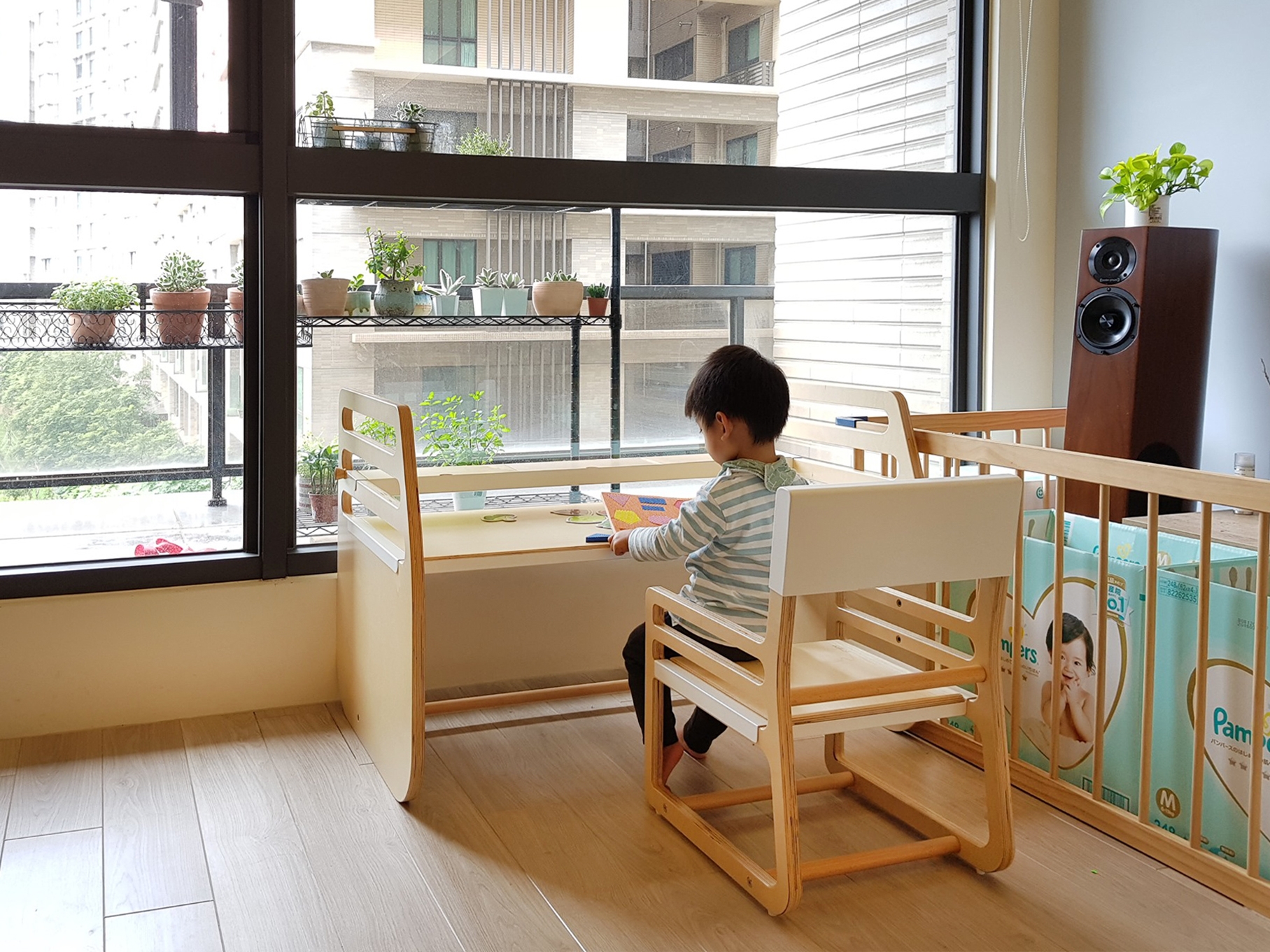 里長伯對於長期只能在Ikea餐椅上簽名蓋章感到不滿,奴才趕緊上網發包,看中正在募資中的台灣家具品牌走走成長桌椅組。圓潤寬闊的造型跟圓臉五花很搭,看起來簡約舒適蠻討人喜歡。桌椅都能陪著五花長高,希望能用久一點。