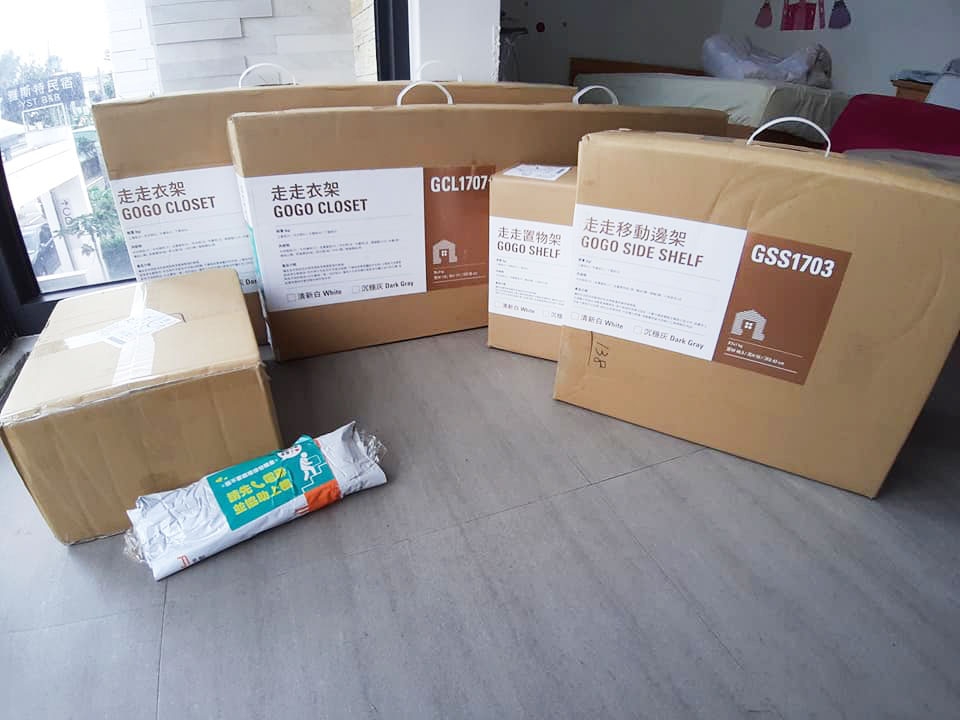首先非常感謝假日裡,鳳體微恙的走走少女B幫忙進行空間規劃,讓我在兩用架和置物架的猶豫中掙脫,得以安心下單「衣架、置物架、移動邊架」我和走走少女B在週日請益解惑討論、週二下單、週四到貨、週六到齊,週日組裝,不到一個禮拜的時間,朝思暮想的架子們就活生生的出現在眼前,真的挺不可思議的。