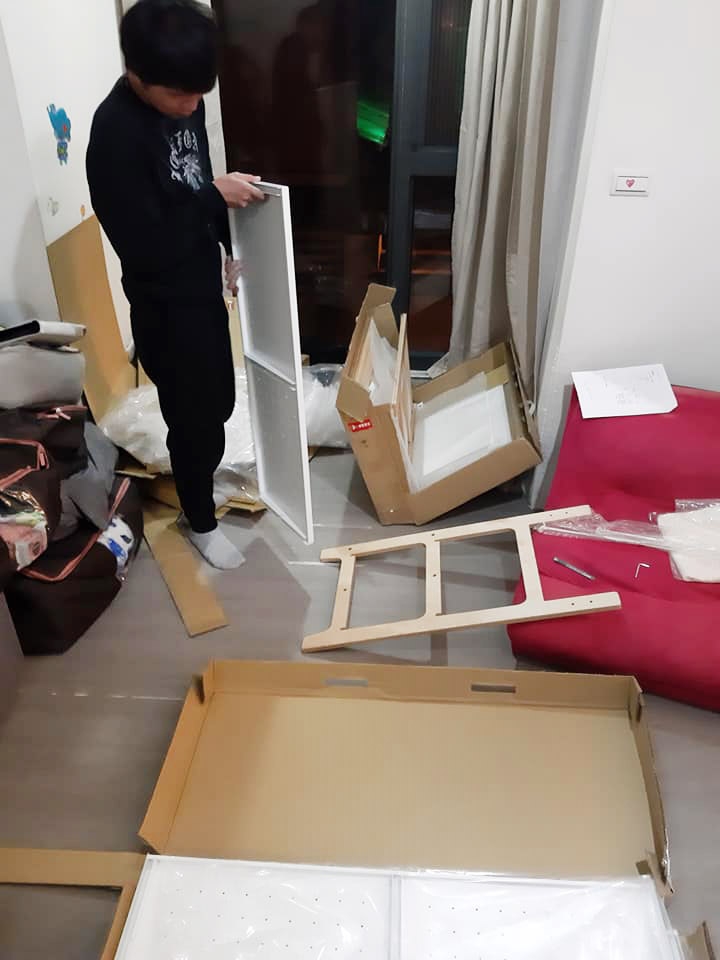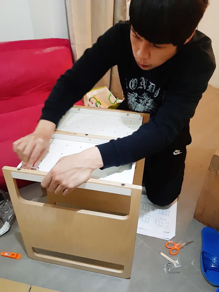 對於走走展現這樣的效率令人驚艷,而且組裝過程出現的問題也能即時客服on-line,感動再加倍,再次跪謝少女B~由於邊搬家邊組裝家具,讓這房間看起來像極了戰場,若是可行,建議有興趣入手走走家具的人,別在戰場裡組家具,避免工具扳手會不斷神秘的消失!由於在戰場裡組家具,從開箱、研究說明書、組裝完畢、收拾善後,我和夥伴花費了約莫兩個小時,完成了這三架!