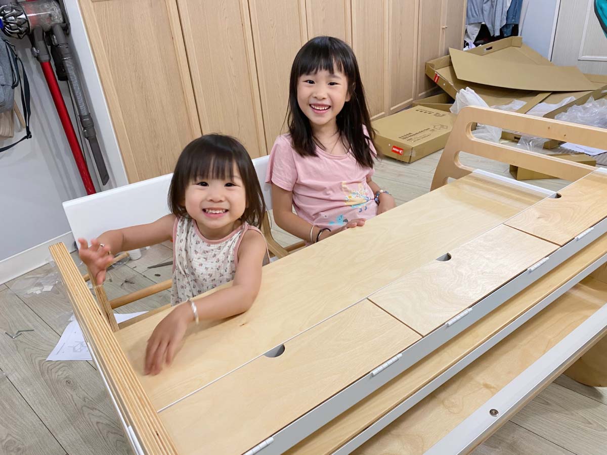 收到《走走家具》的邀請時很開心,原本我們只想買一般桌子而已,但看到成長型桌子,又覺得好吸引人(爸媽先被吸引)於是就答應了。