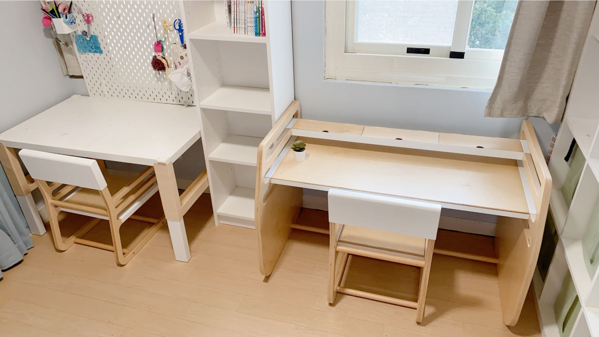 彩蛋二:擺完了走走家具的成長桌椅後,白露覺得原本的桌子顏色有點不搭,所以也一起換色了。