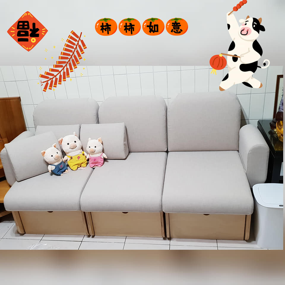 趕在過年前清理好預留空間, 父子倆四手聯組的【三人沙發】終於完成了!!!