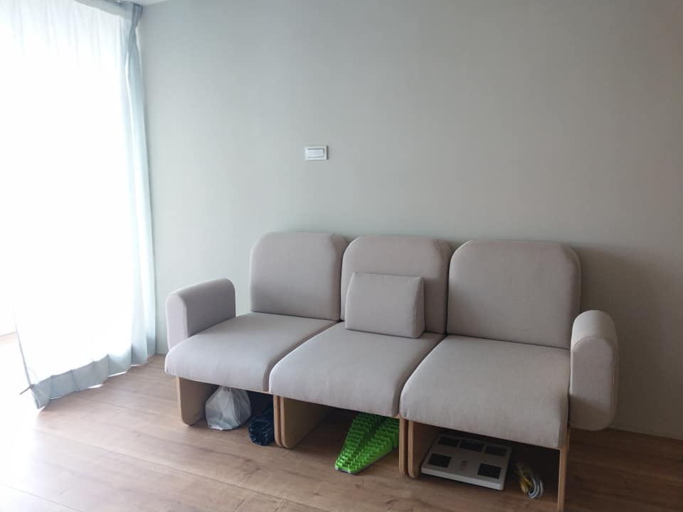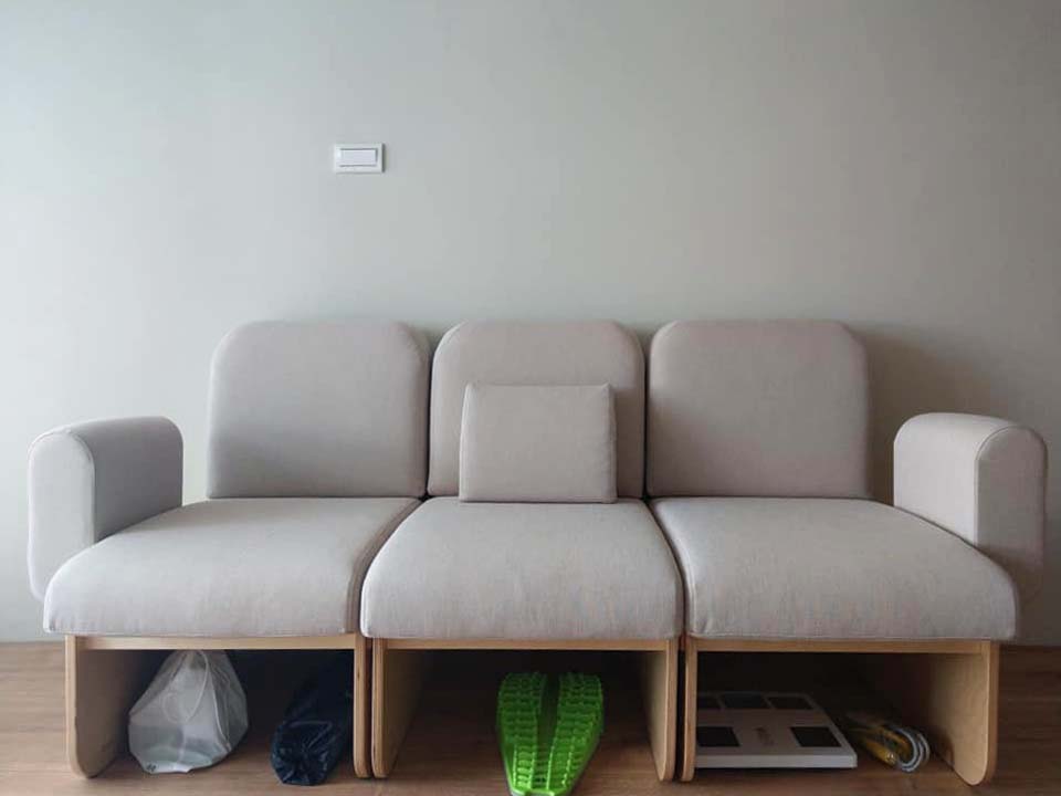 考慮房屋整體想要的簡約實用風格,以及未來若換房能夠好搬遷,小沙發組合彈性大,未來也不想因為沙發失去彈性而丟棄,造成環境負擔,慎重考慮之下,選擇走走沙發。
