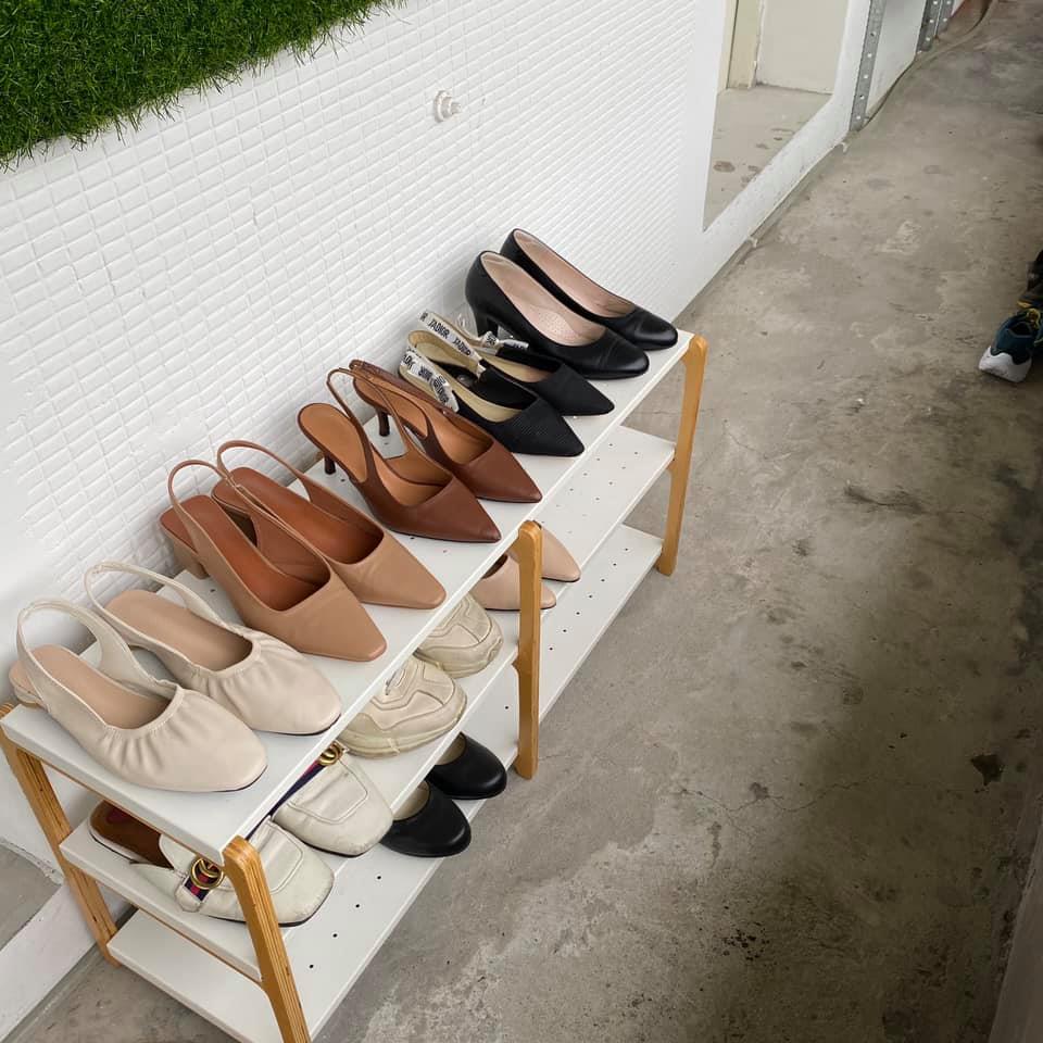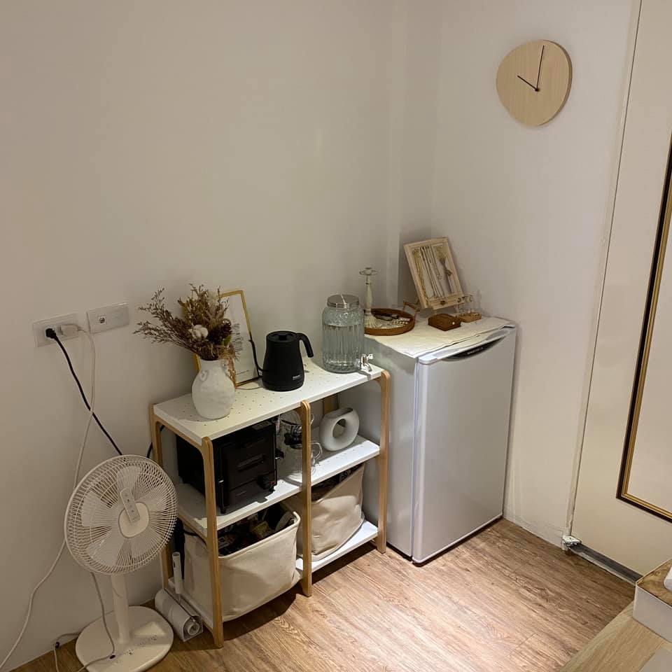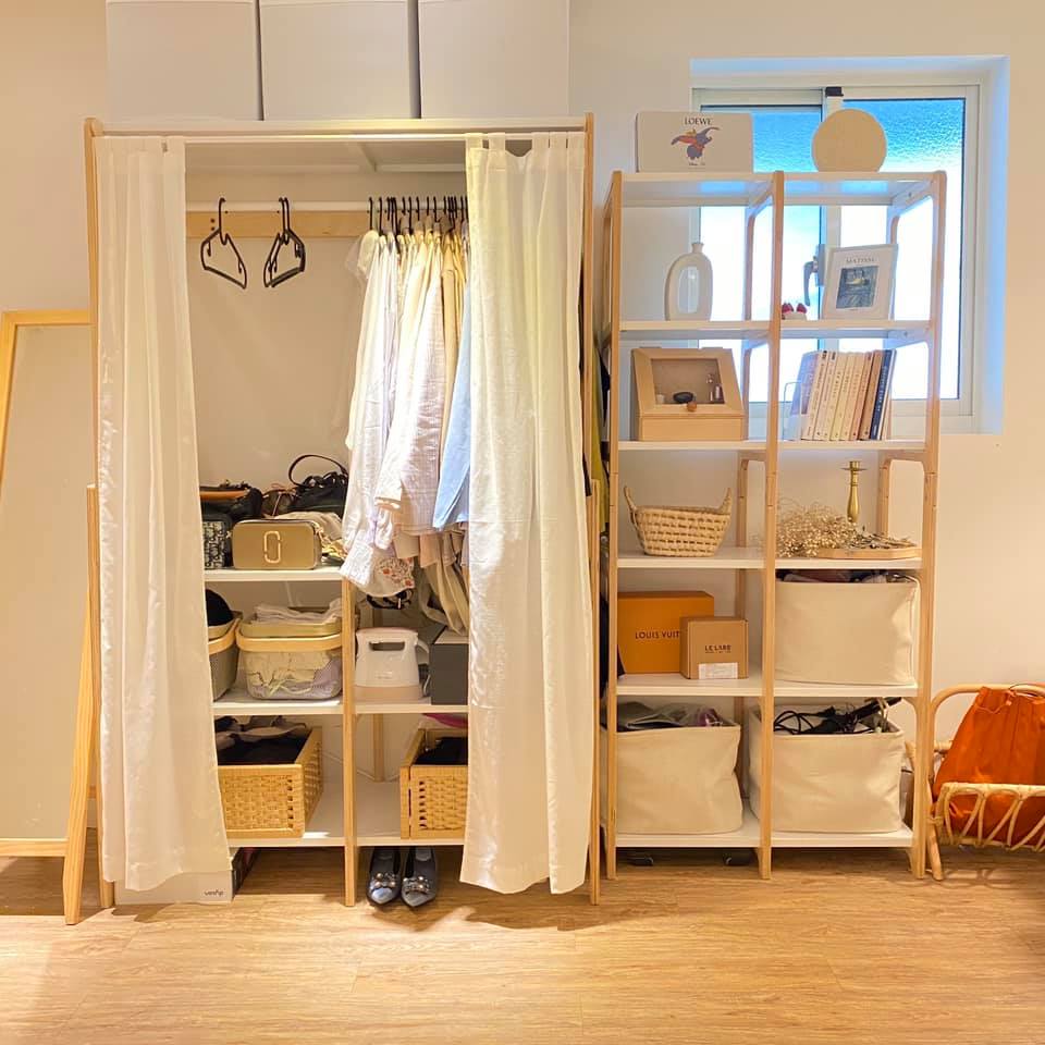 再來是衣櫃,塞進我一年四季的衣服了,沒什麼可以挑剔的地方,開放式衣櫃會讓我的強迫症發作每天都好好整理!來講講原本就有的矮櫃,高度滿適合小下廚的,烤烤麵包沖沖咖啡之類的,我覺得租屋族可以先從這個開始入手,實用性很高。鞋櫃的部分大概一層可放五雙總共可以放下15雙,容量很足夠。