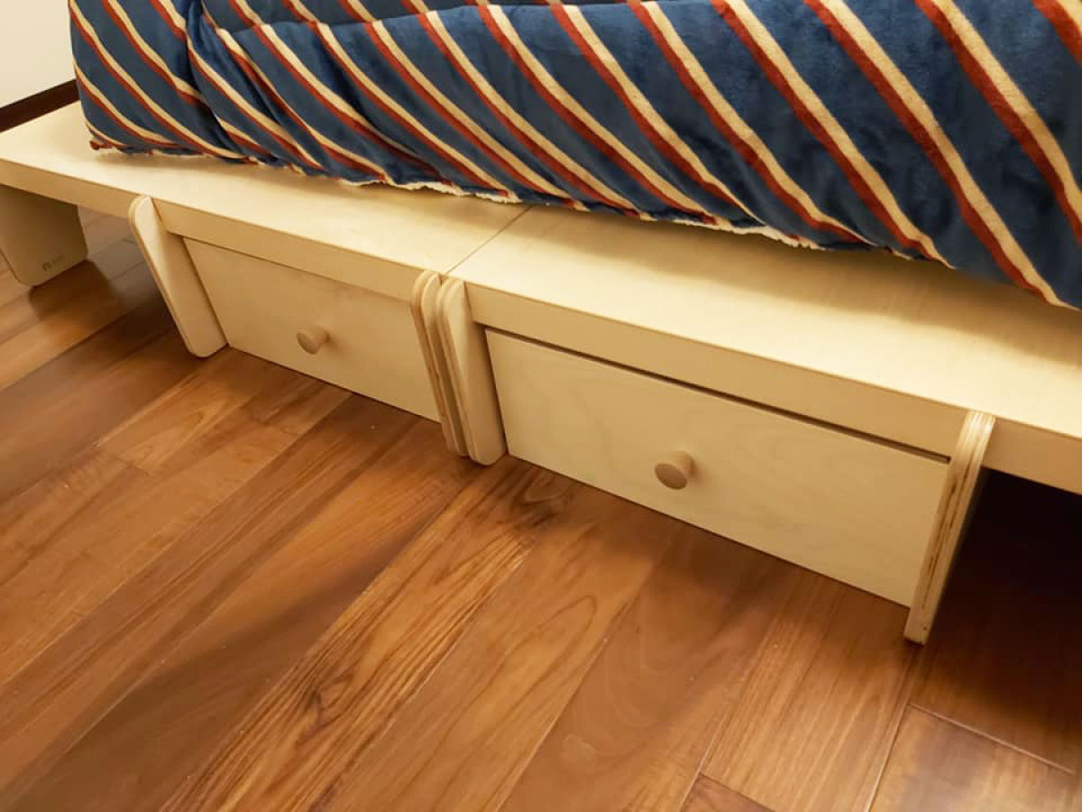 這次加購了移動邊架及床底置物箱,品質一樣沒讓人失望且組裝一樣容易。床底置物箱讓床底的空間都能被妥善利用;而移動邊架更因為設計簡單高雅所以百搭,移到哪搭到哪,放在哪裡都不突兀。
