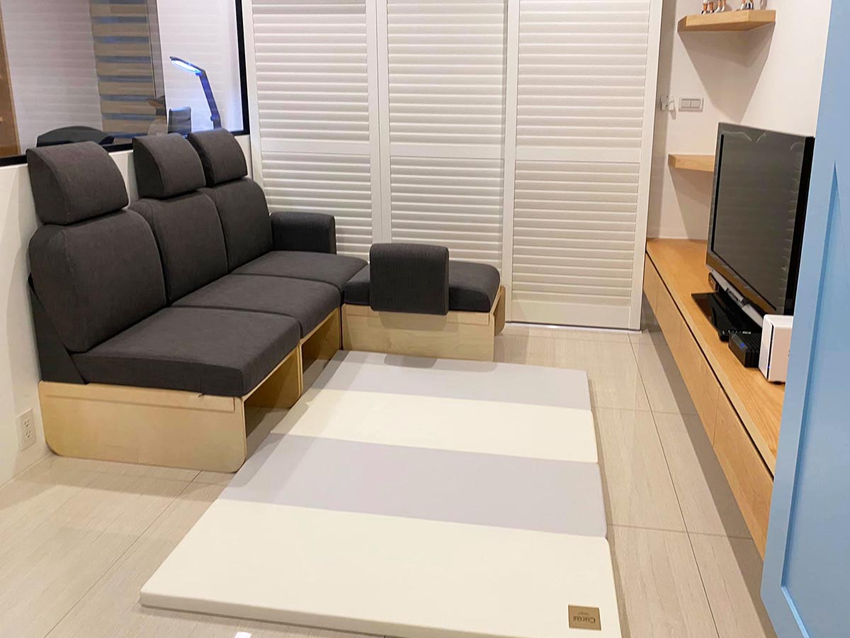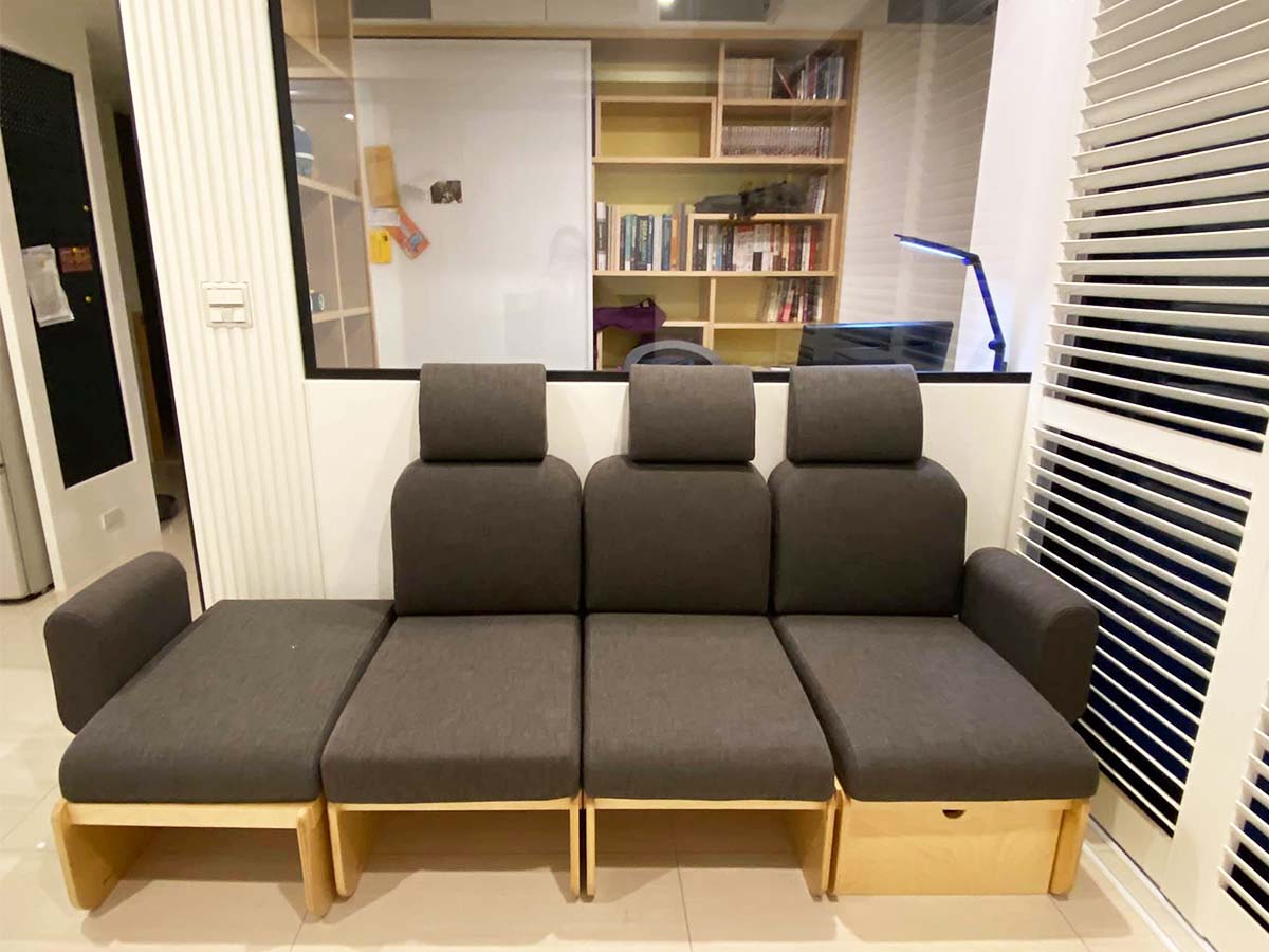 就在某一次的爬文中發現走走家具的新產品模組沙發預購活動開跑中,模組沙發顧名思義可以針對各個形式的客廳和使用需求調整大小和組合方式,非常彈性,連我們之前想都不敢想的L型沙發,也可以多加個貴妃椅實現。走走沙發骨架採用的是高硬度樺木夾板搭配鐵板,穏穏耐重又好清理;而歌劇院等級的高密度泡棉,耐壓不易變型,也不易滋生塵蟎;防潑水的貓抓布套好清理又很耐髒,每一塊都可單獨拆卸機洗,根本完全聽到我的心聲,預約試坐後即下訂,沙發也在預購活動結束後貨運送到家。
