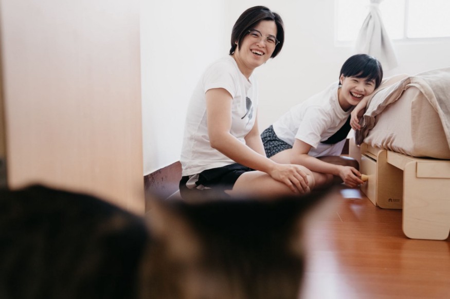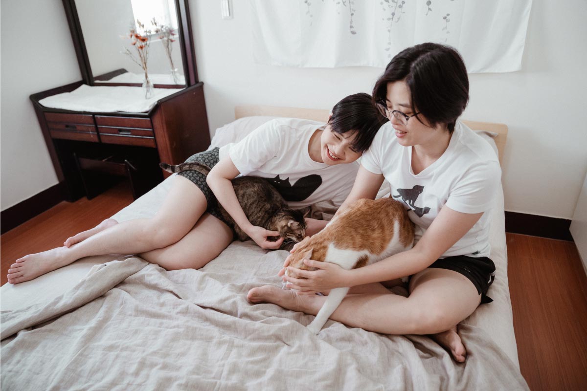 一度想要用卡扣地板調整為柚木地板,但所有的家具在搬家那一刻就都就定位了,有很多考量導致無法這麼做,像是兩個女生力氣不夠全面性移動現有的家具、貓很敏感不適合再施工、也害怕吵到樓下的鄰居。
