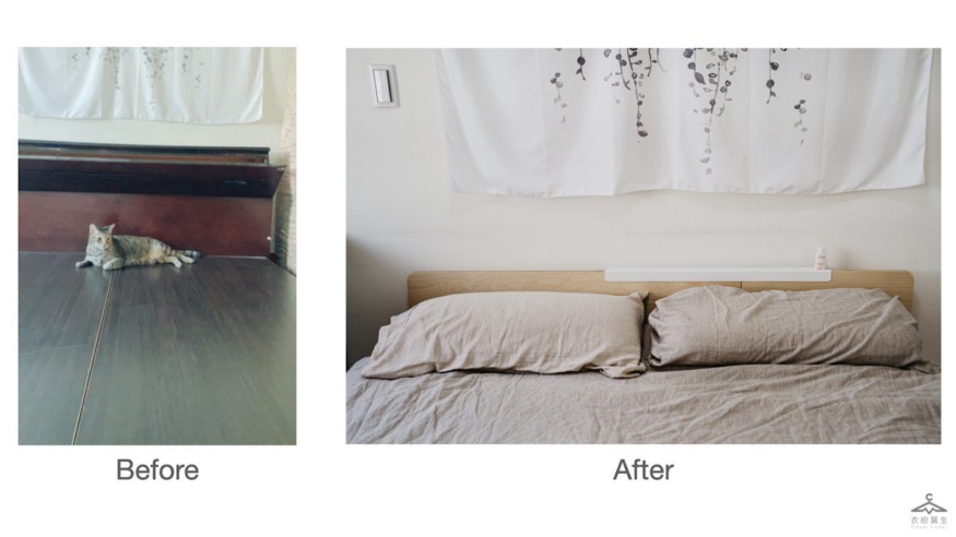 原本房間坪數不大,去除掉似是而非的巨型收納箱:床頭櫃。現在換了新床架之後,不只更知道自己的需要,我們整個空間也變得更寬闊。在房間裡心情就很好!不僅如此生活還出現奇妙的漣漪效應: