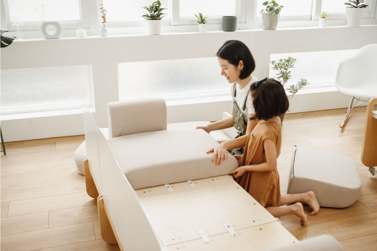 螺絲部分也設計的很簡單很清楚,所以這個步驟我就交給少女,骨架都固定好後直接放上坐墊就完成啦~方便又簡單!我覺得帶著孩子一起組裝家具,除了親子同樂之外,孩子也會特別珍惜!(不會在上面畫畫或是黏鼻屎XD)